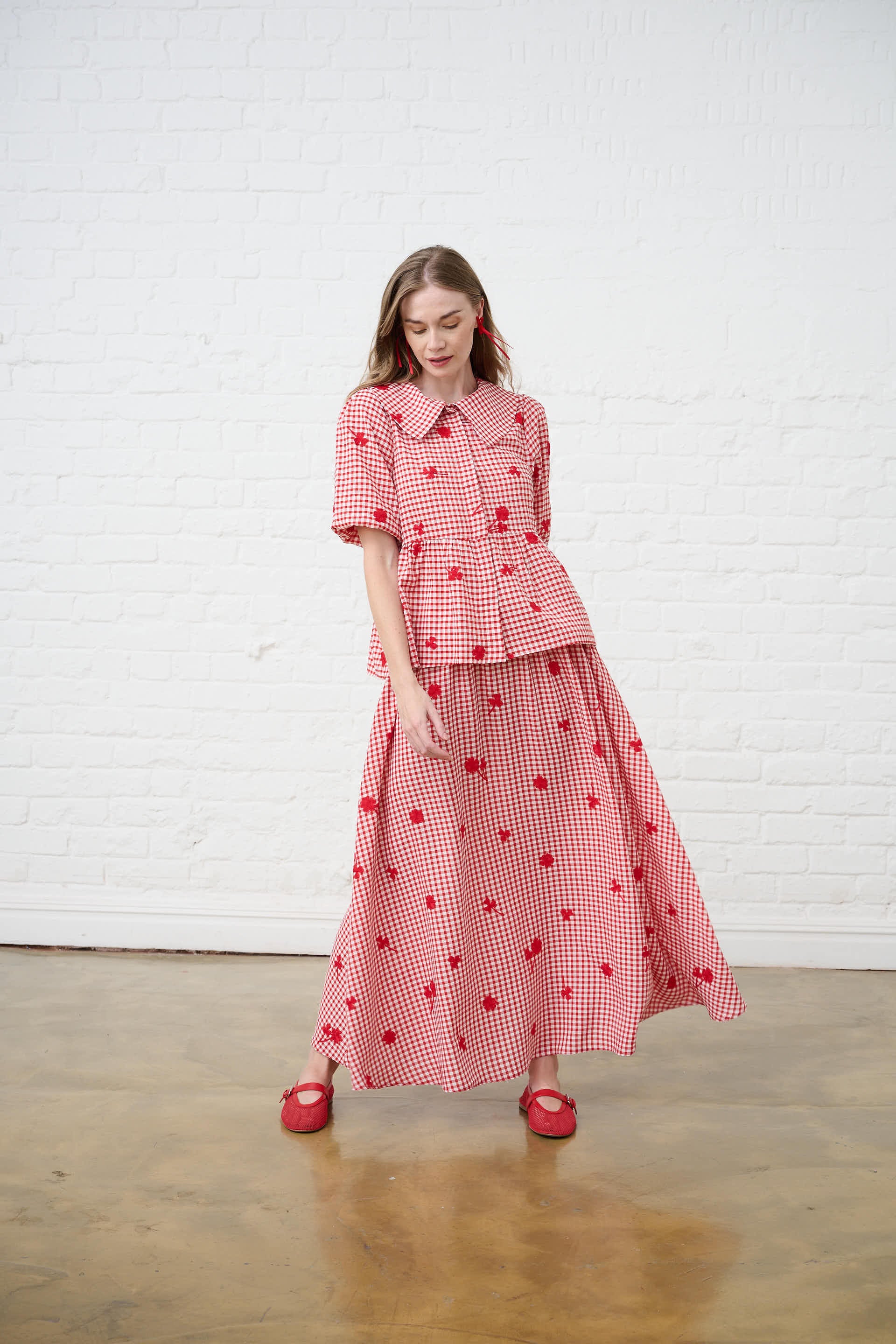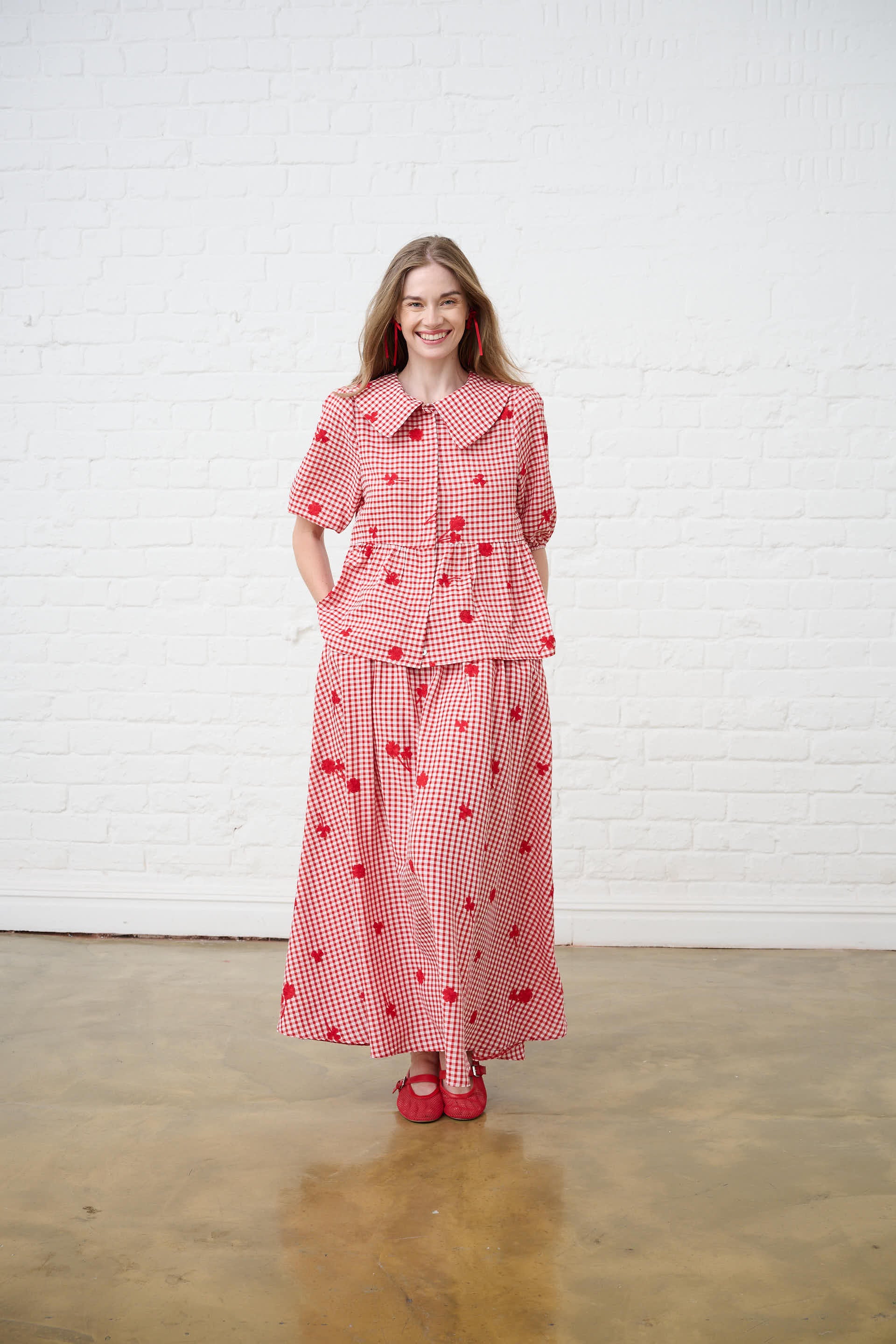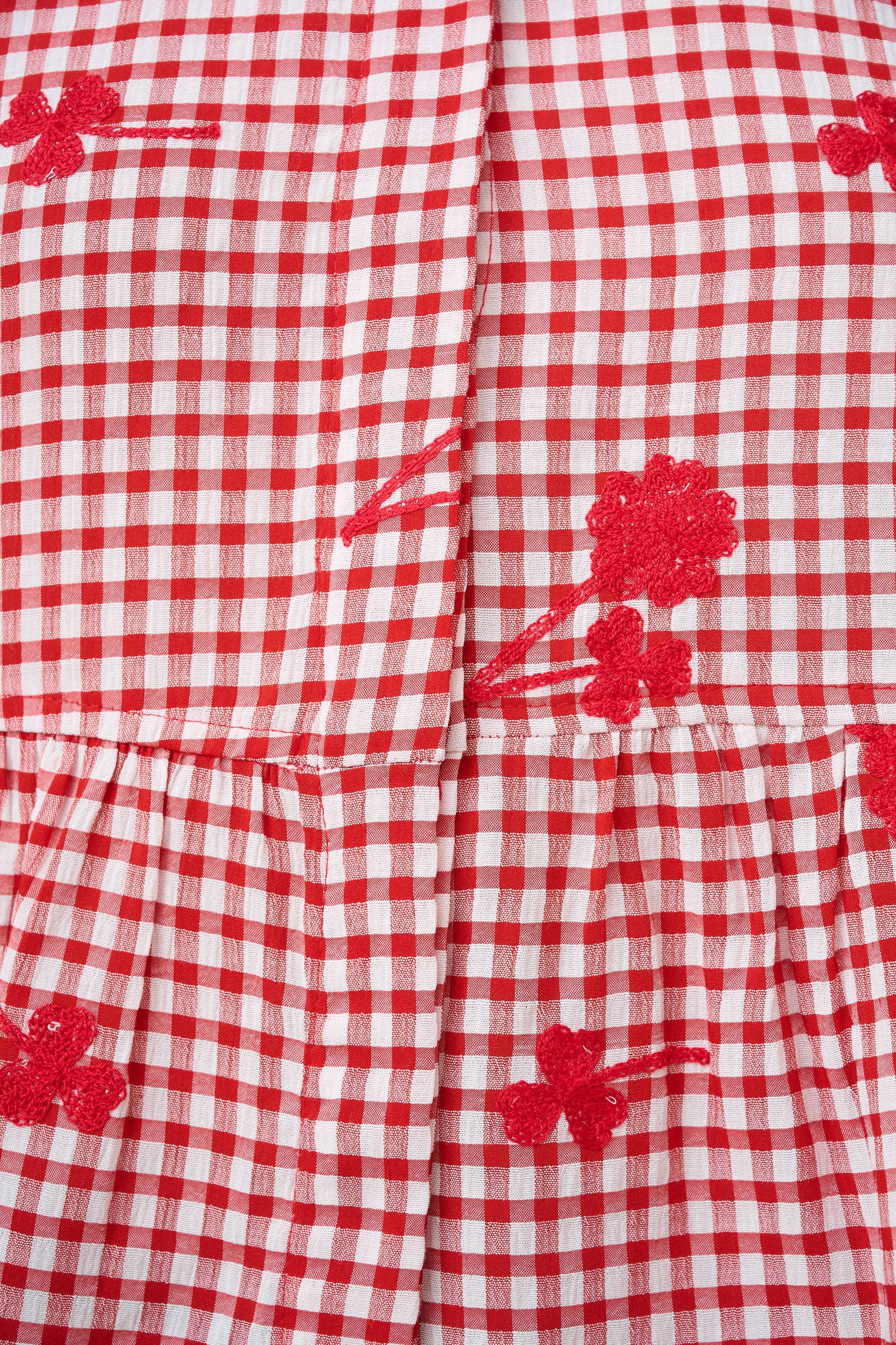 Embroidered Gingham Skirt in Red