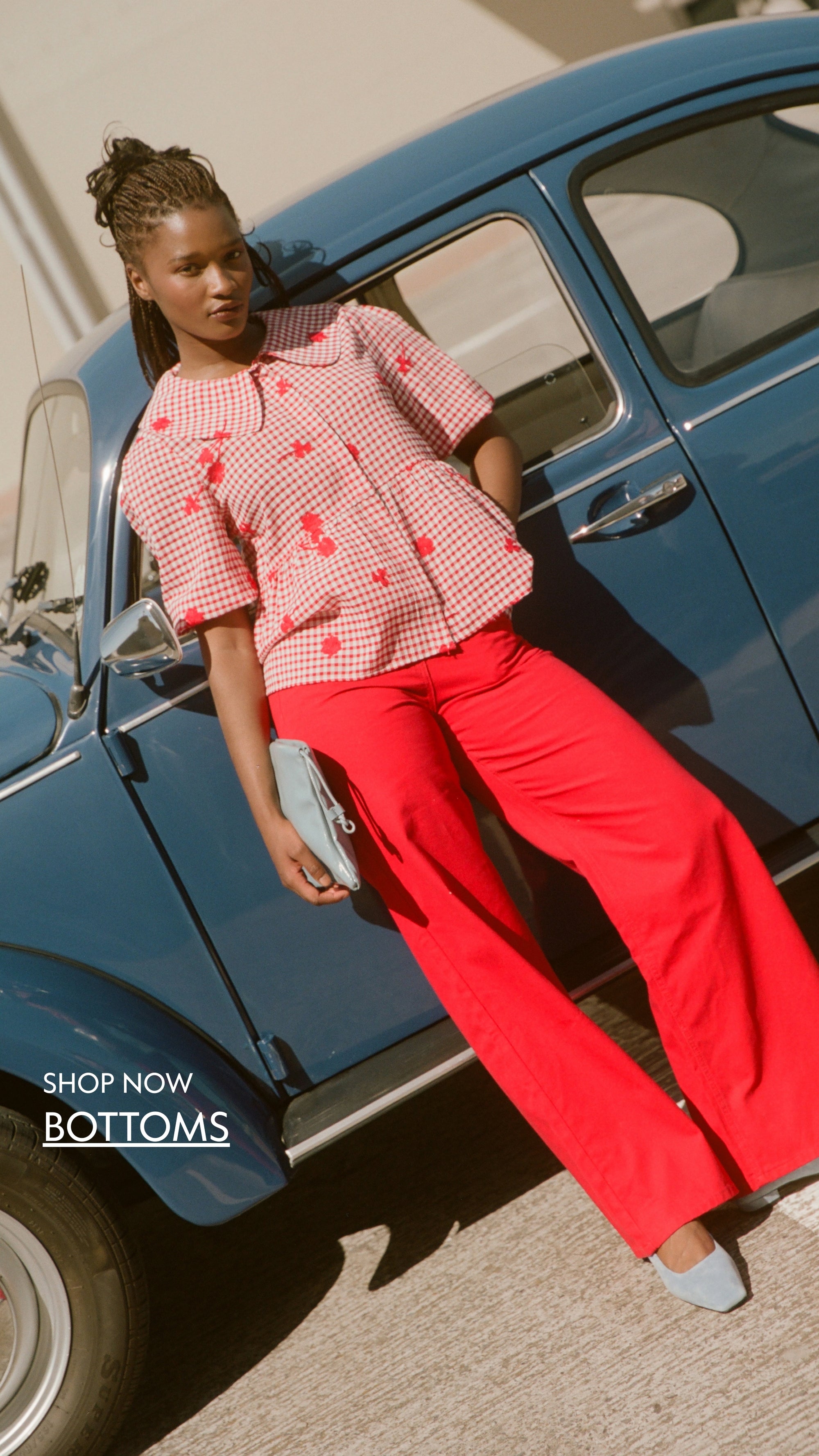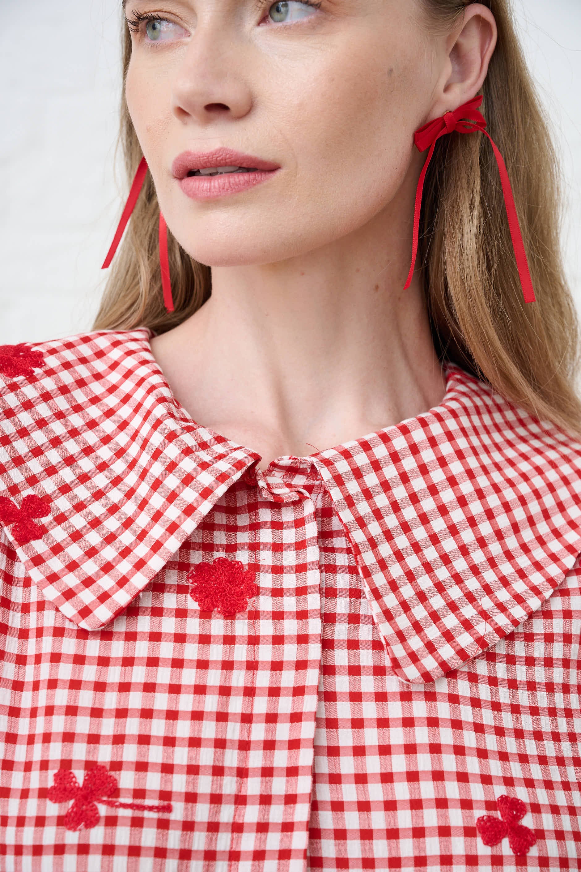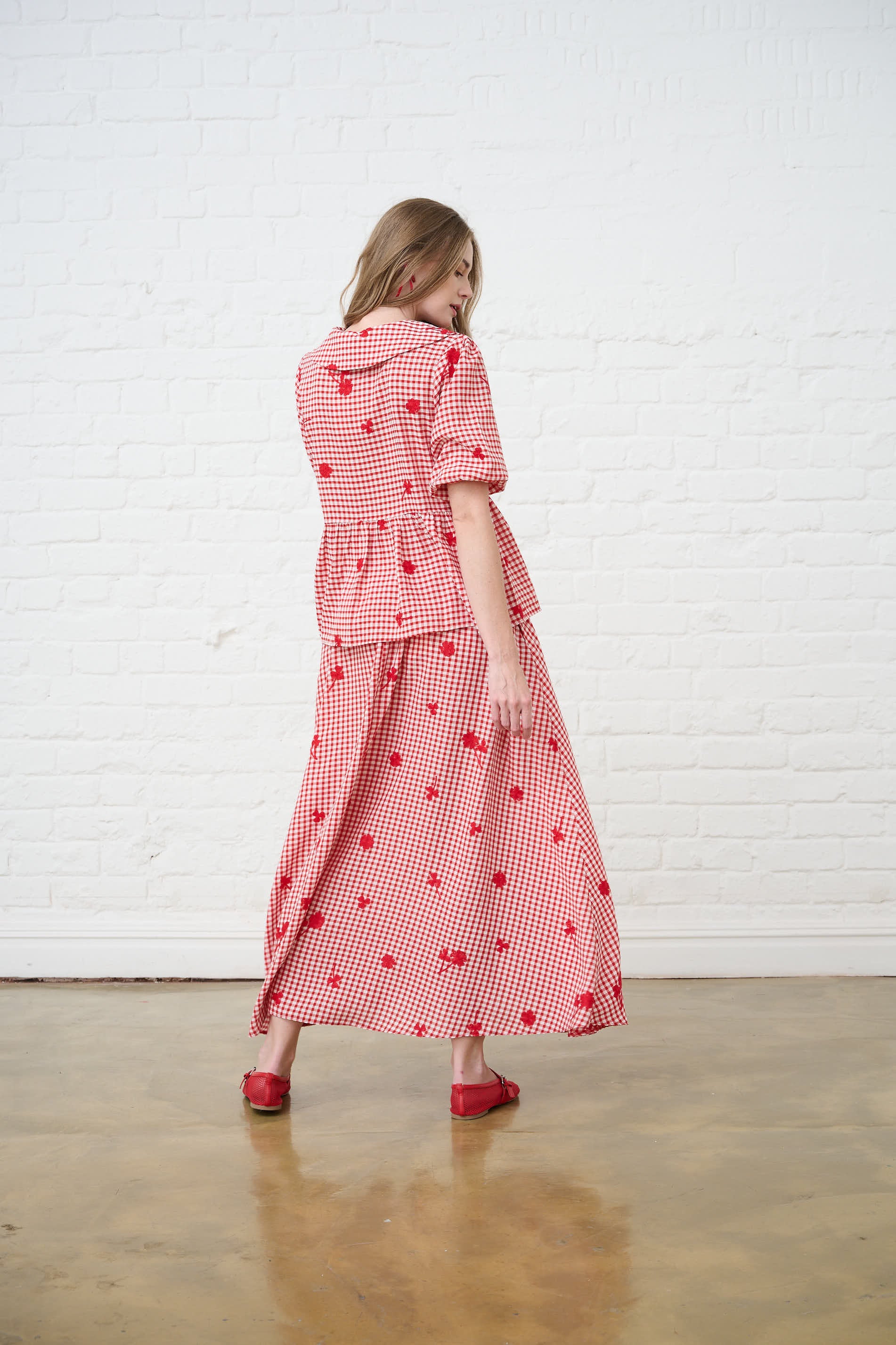 Embroidered Gingham Skirt in Red