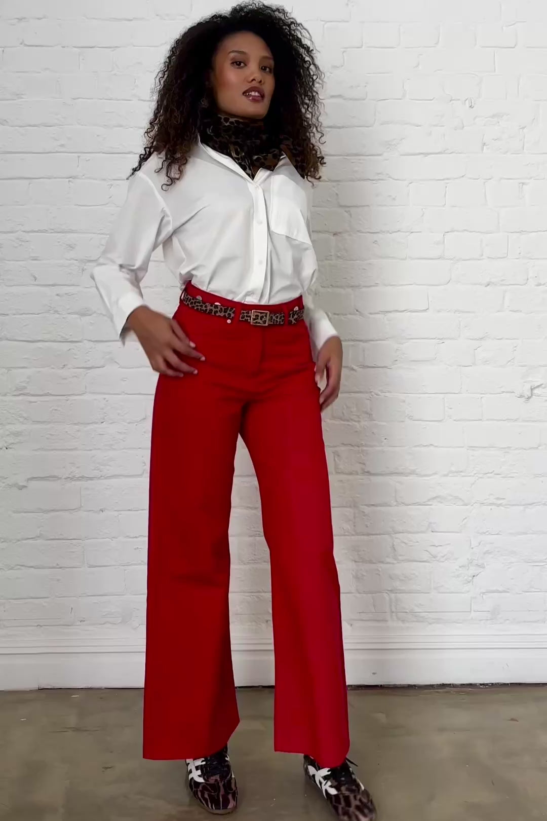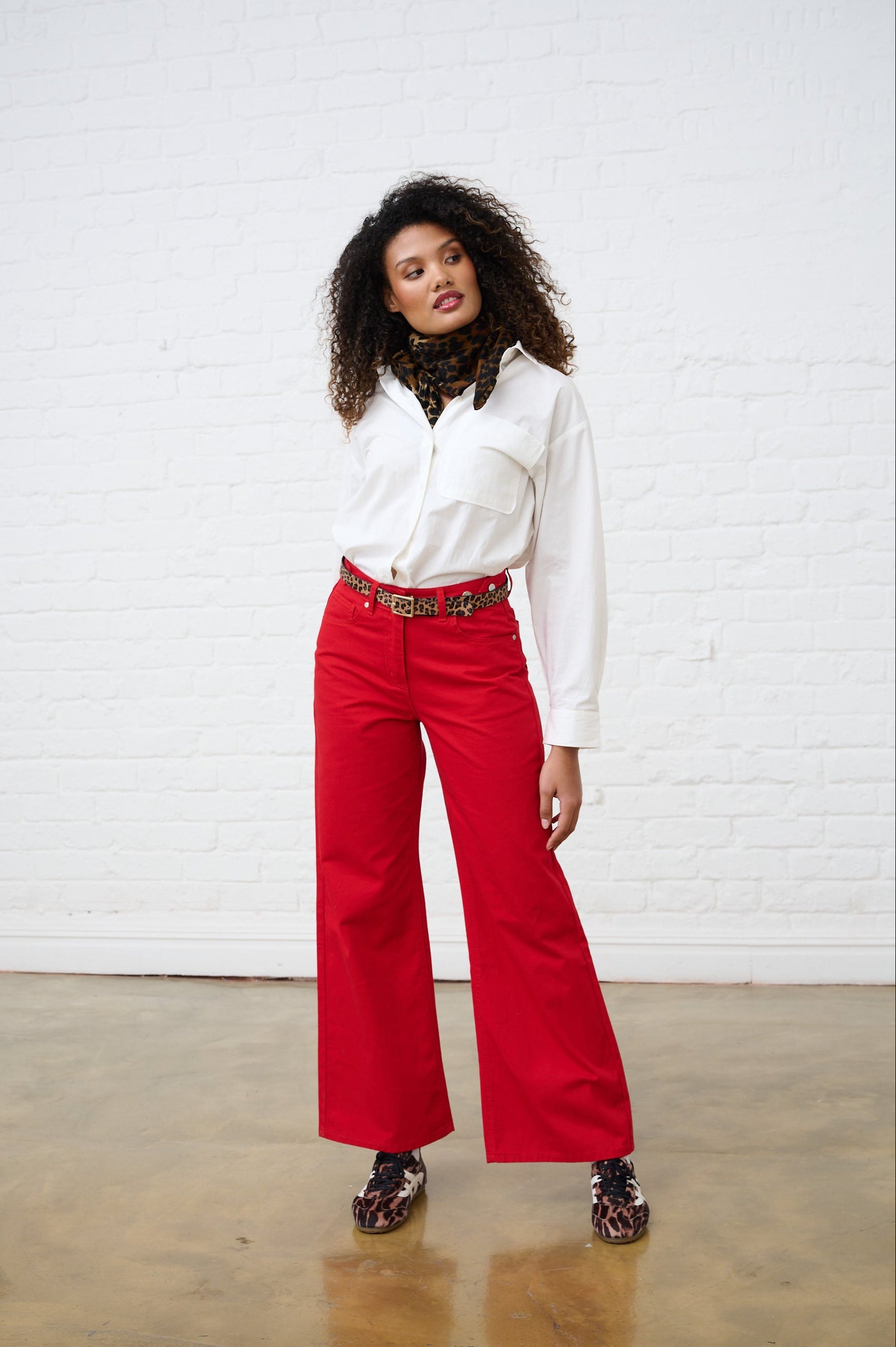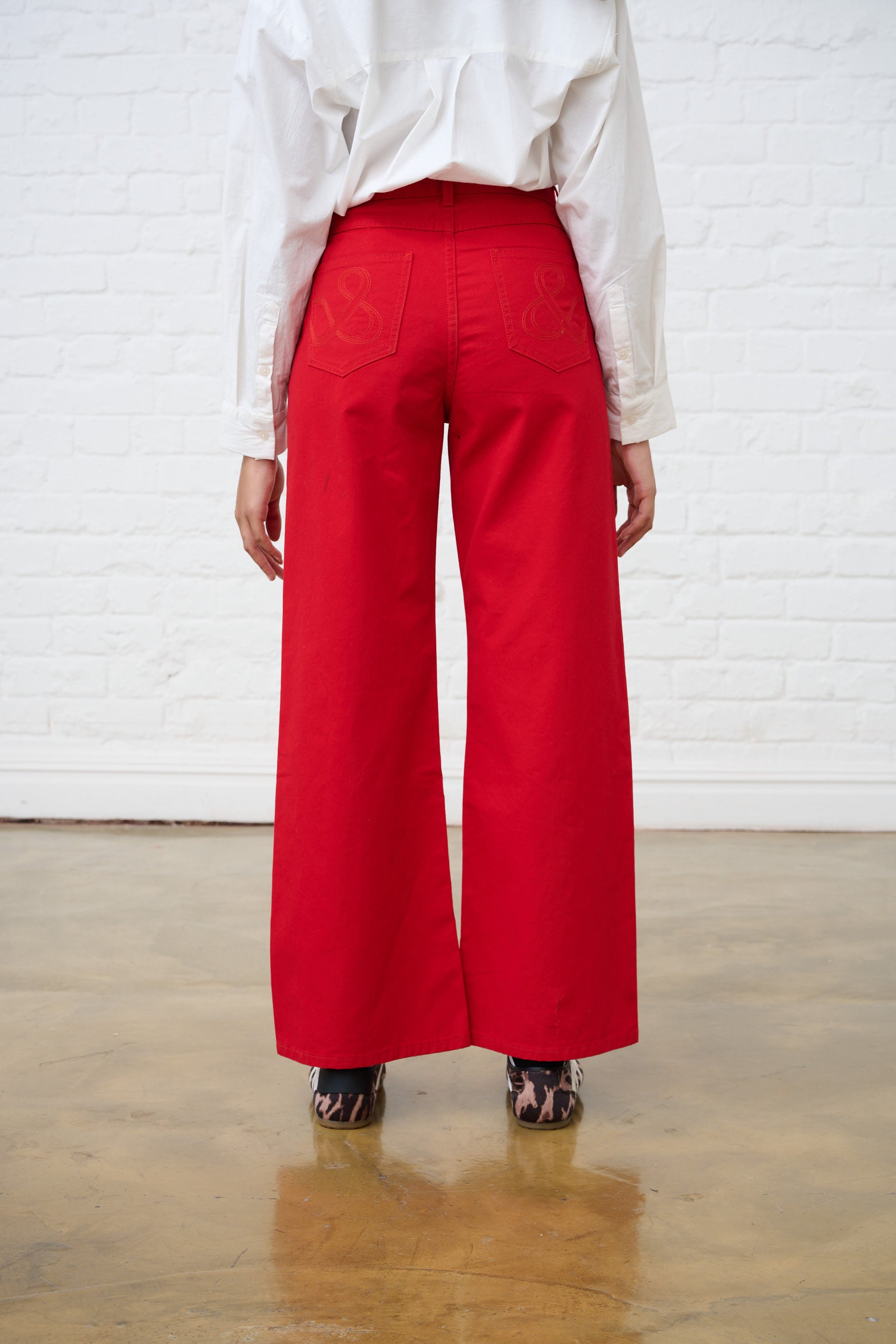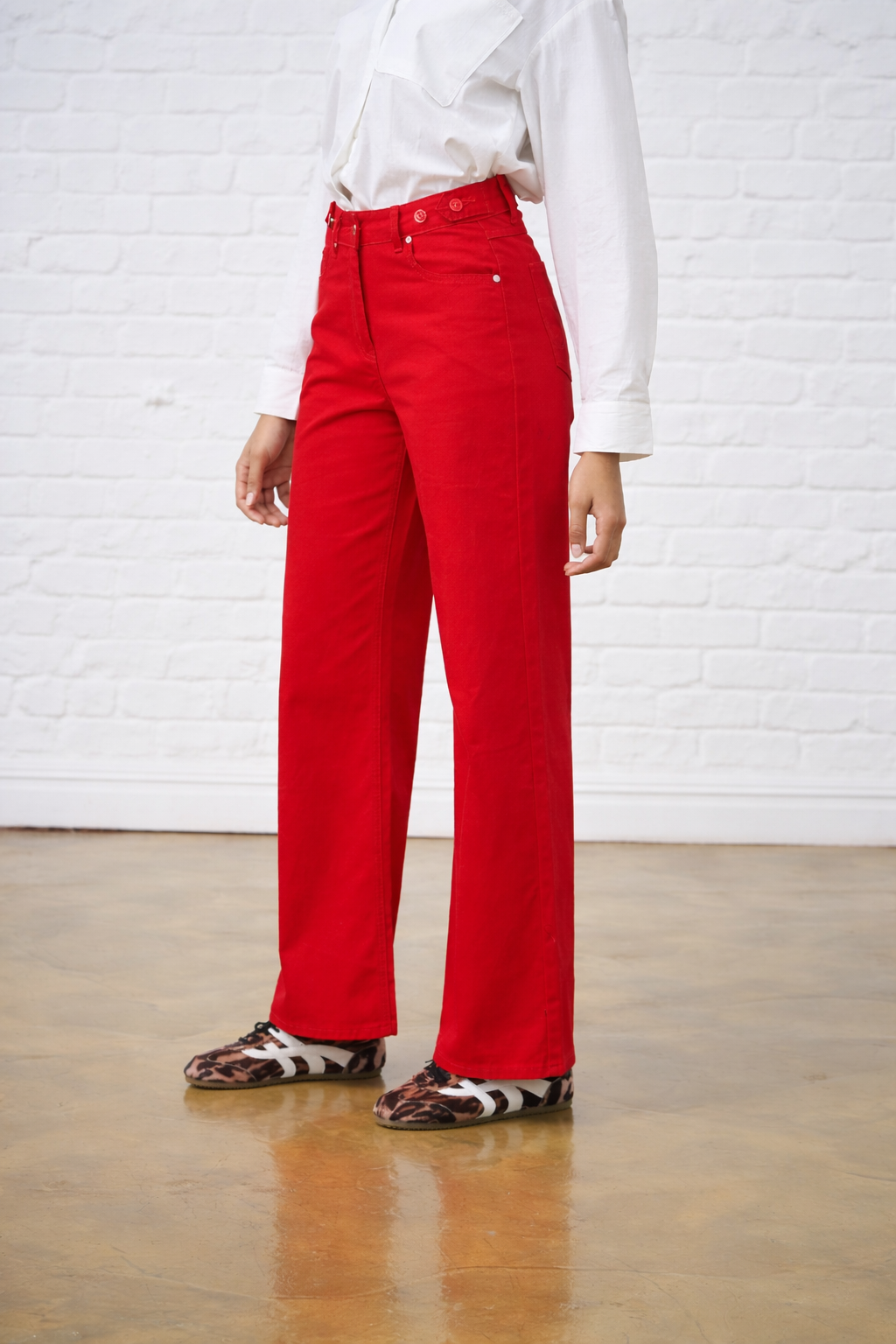 Adjustable Waist Wide Leg Jeans in Red