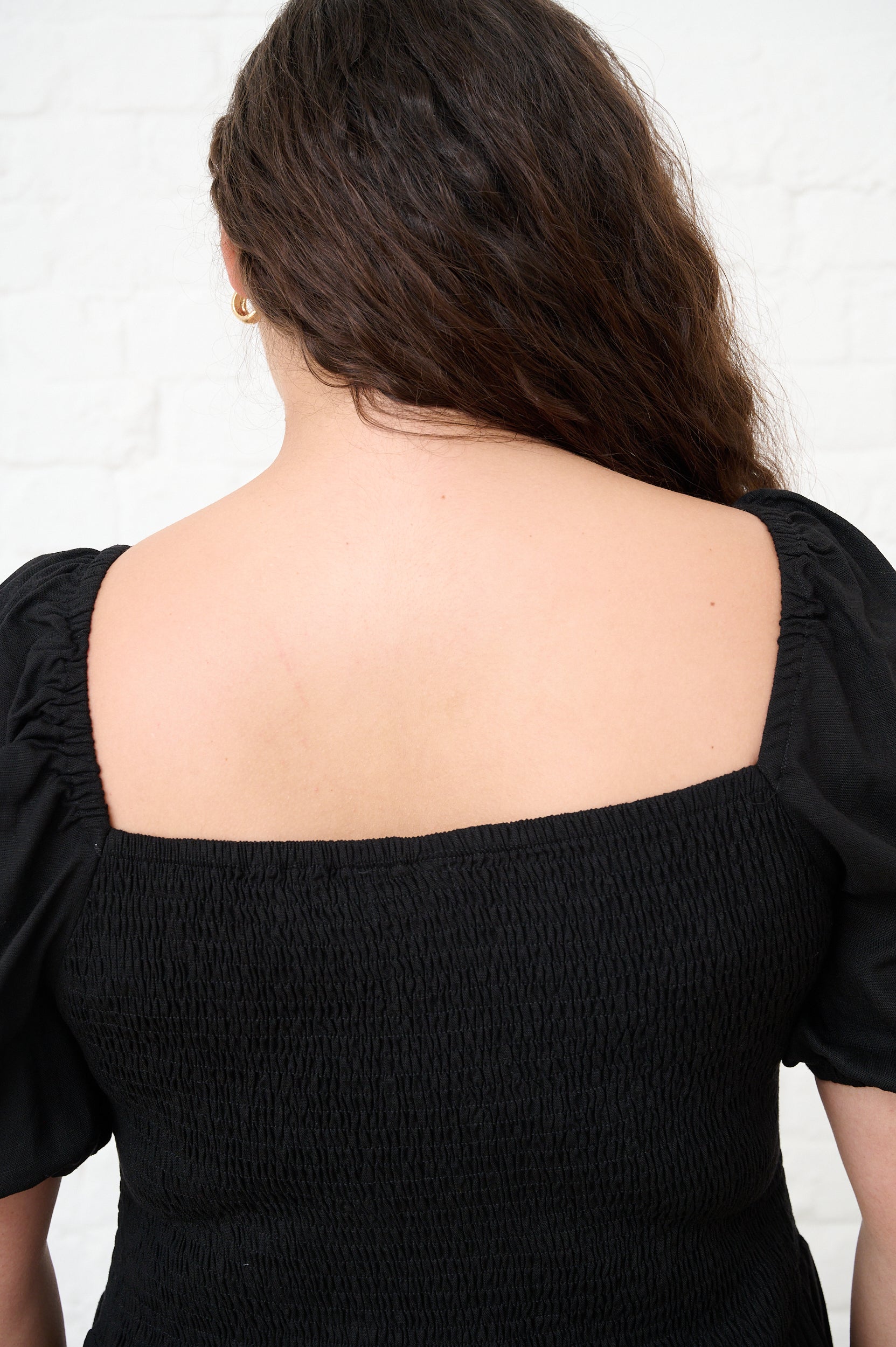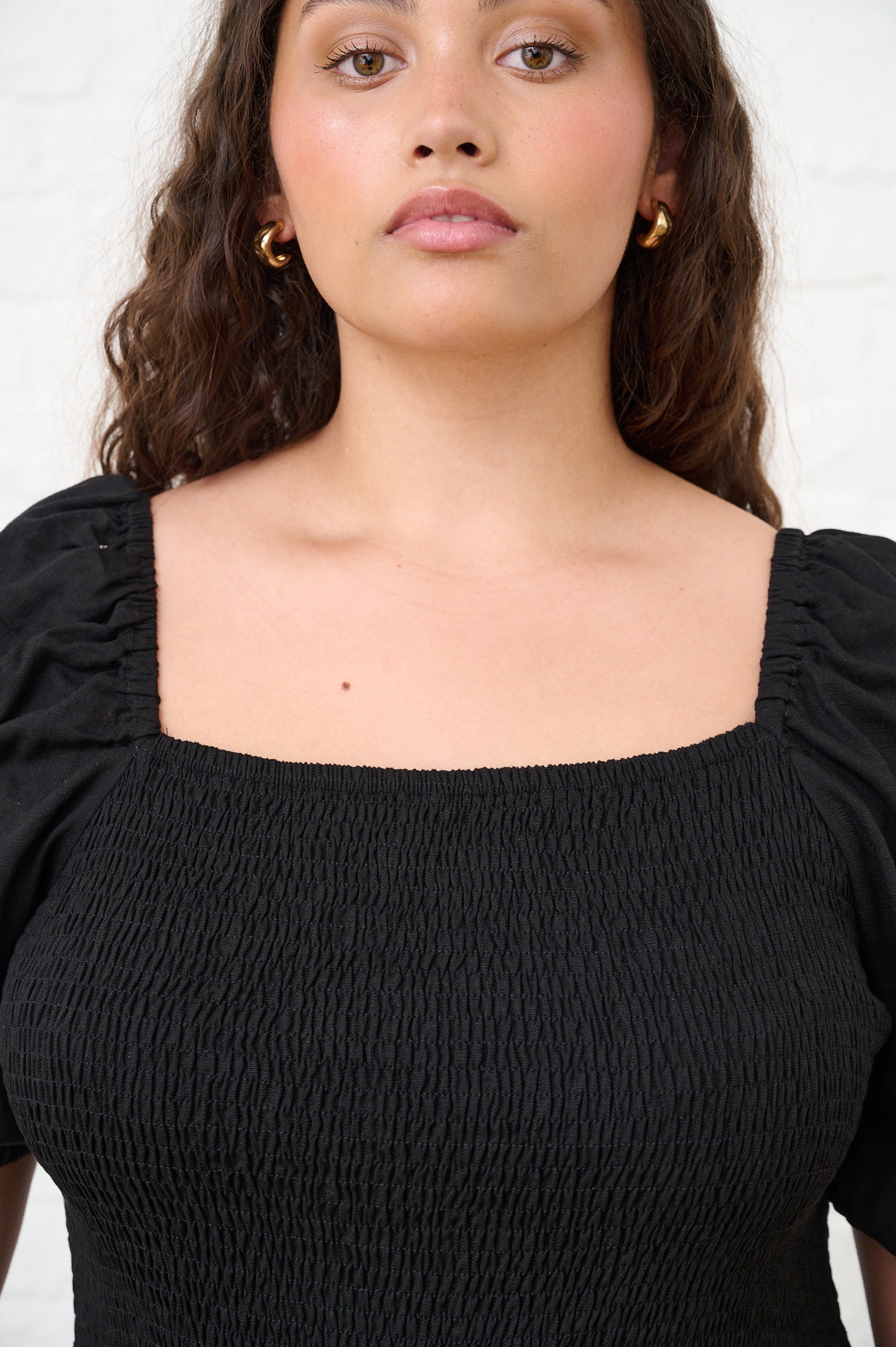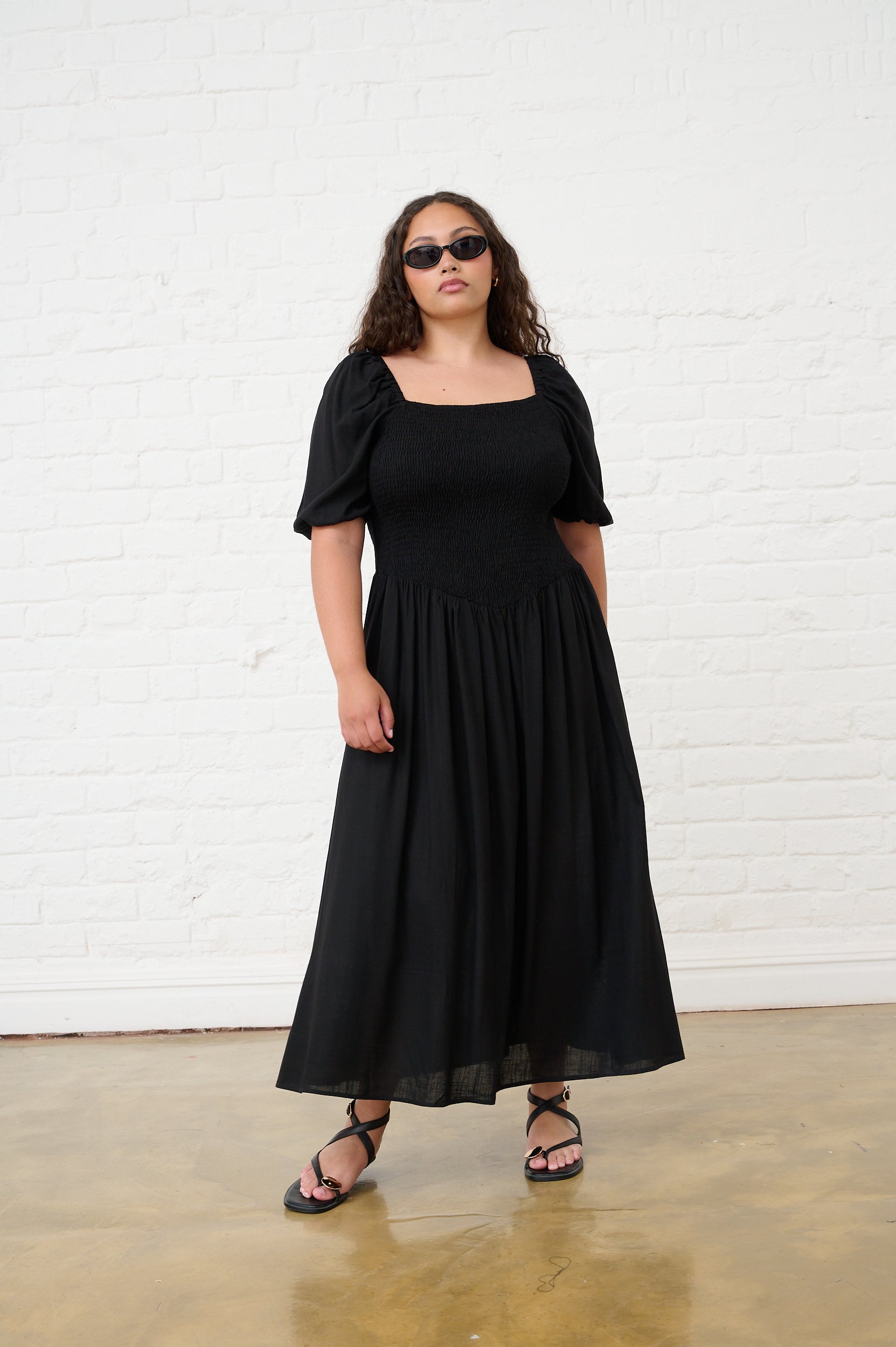 Shaped Hip Smocked Maxi Dress in Black