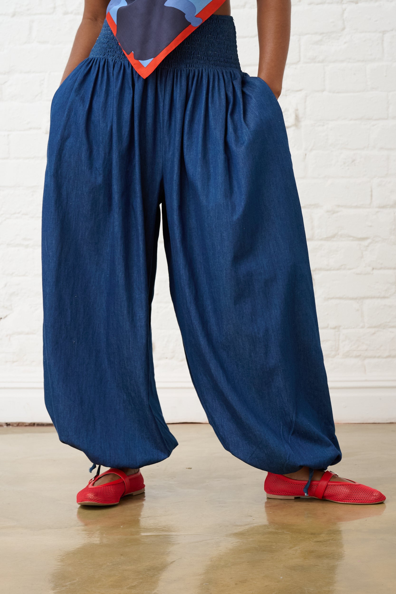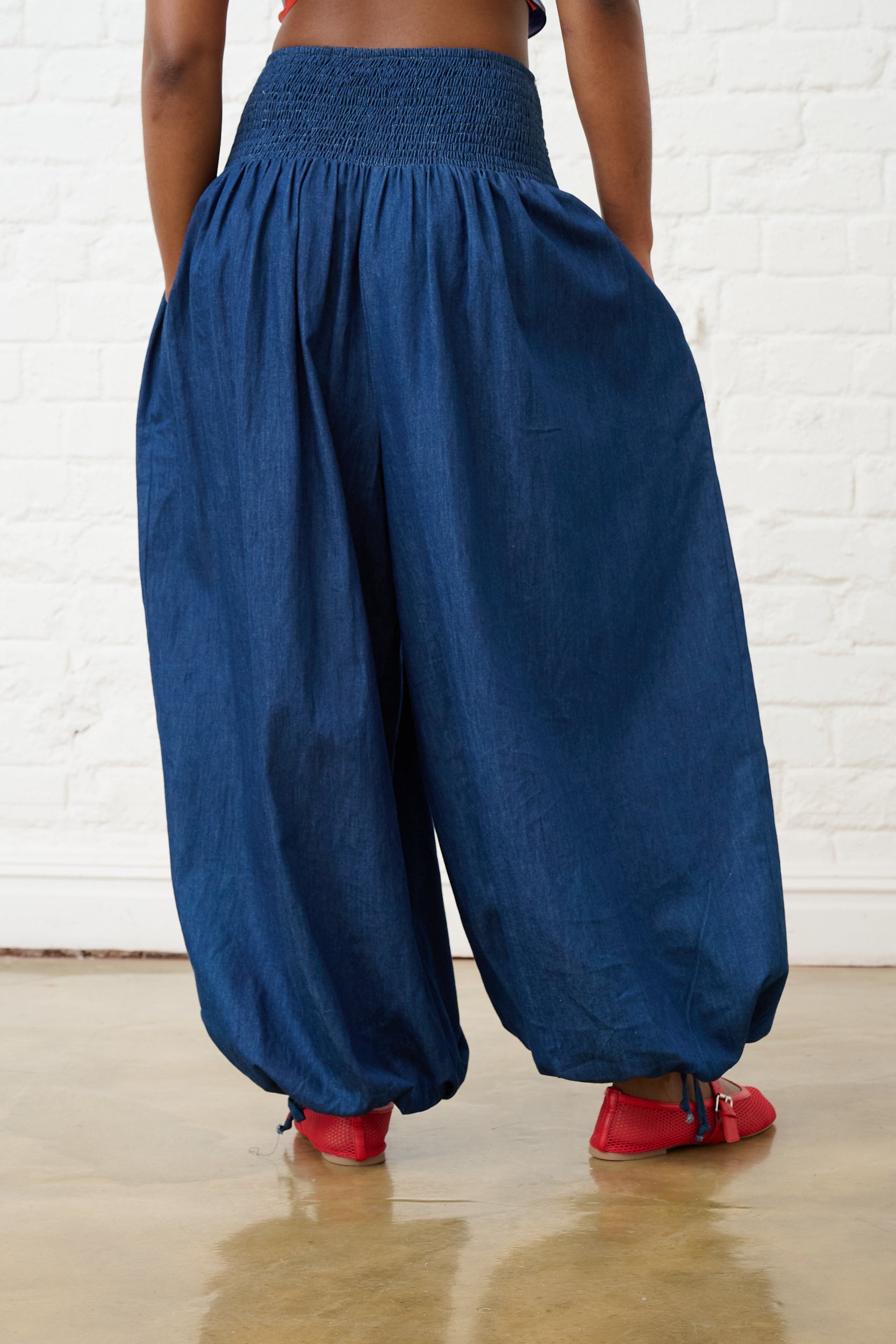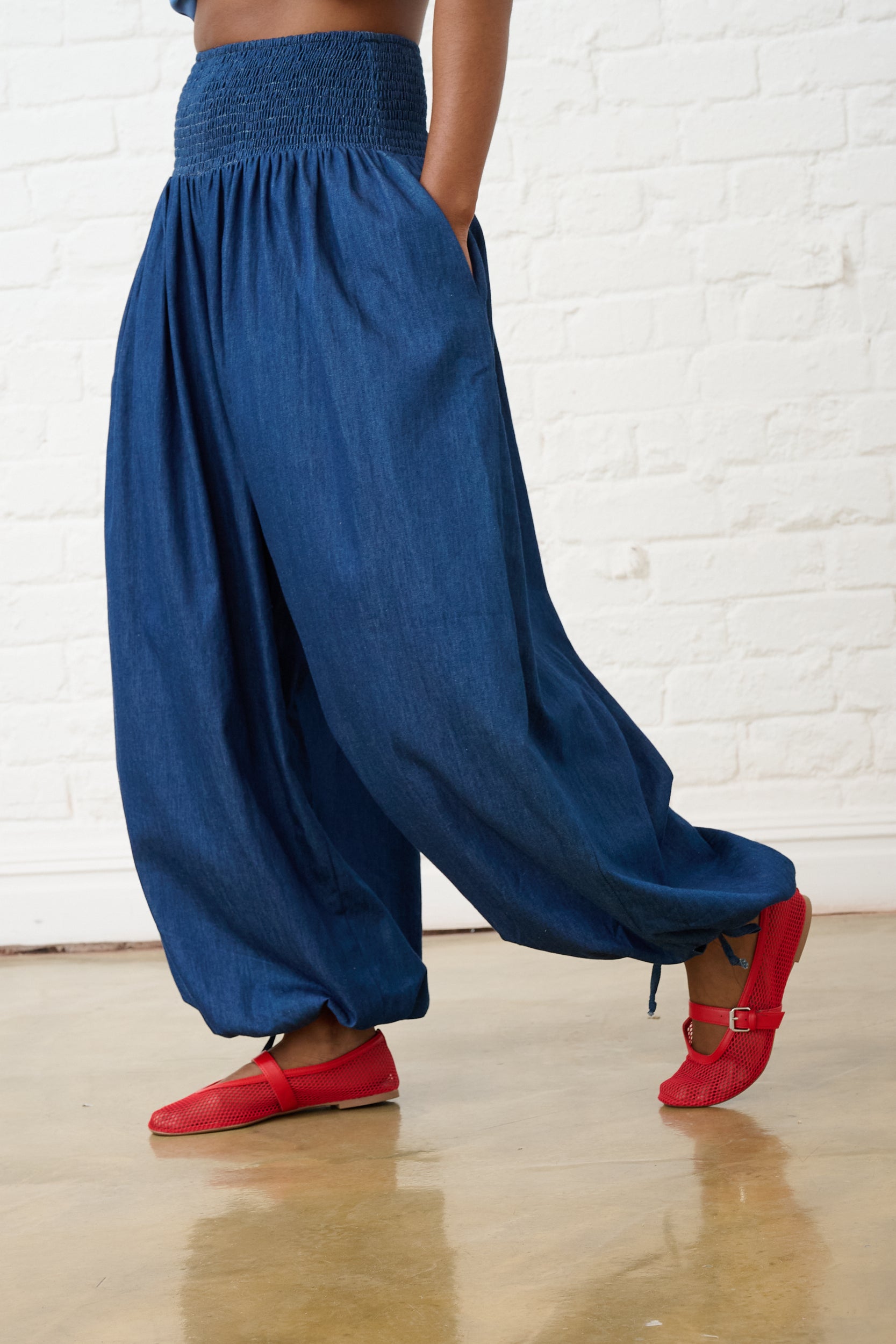 Balloon Drawstring Pants in Denim