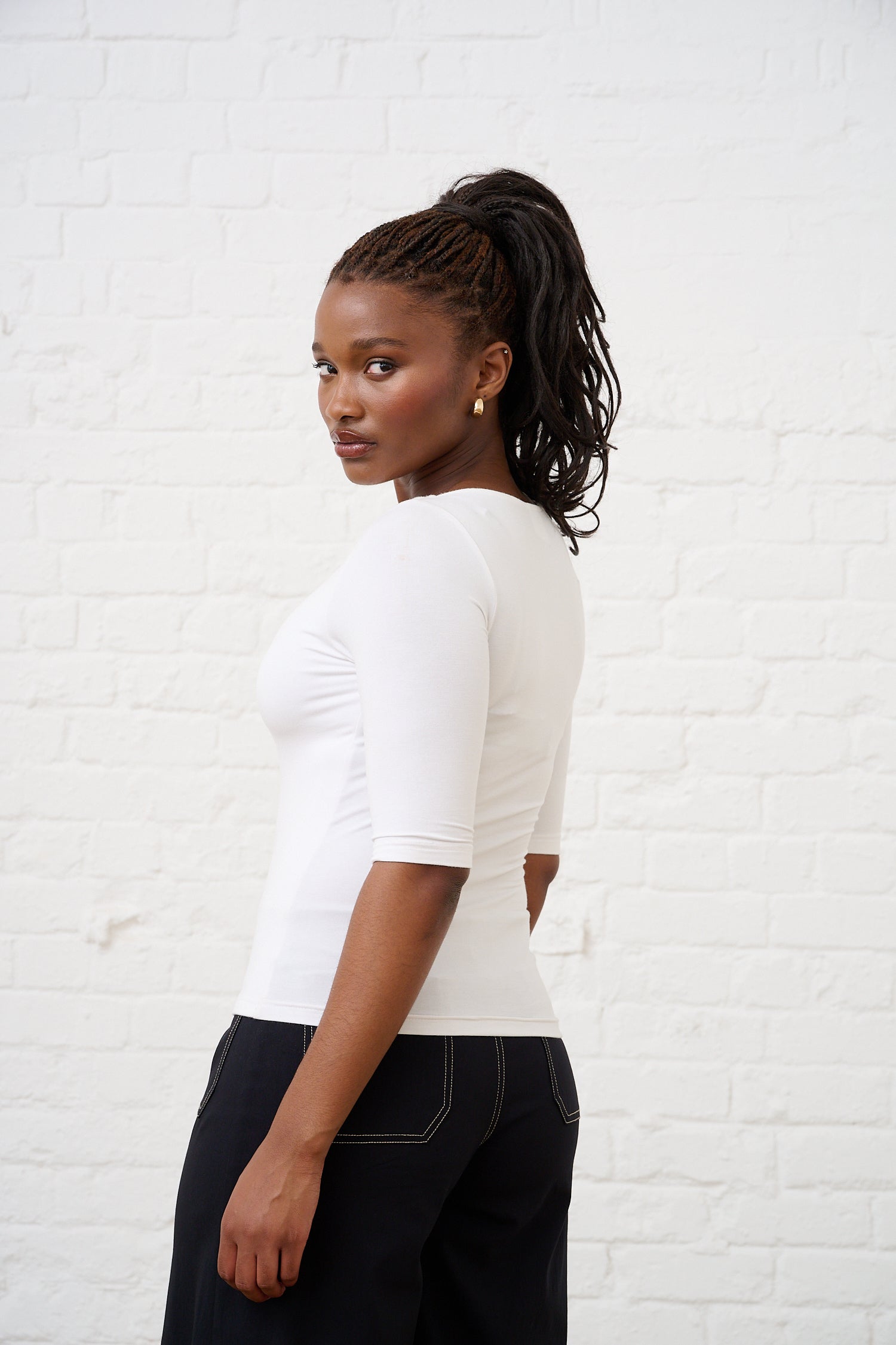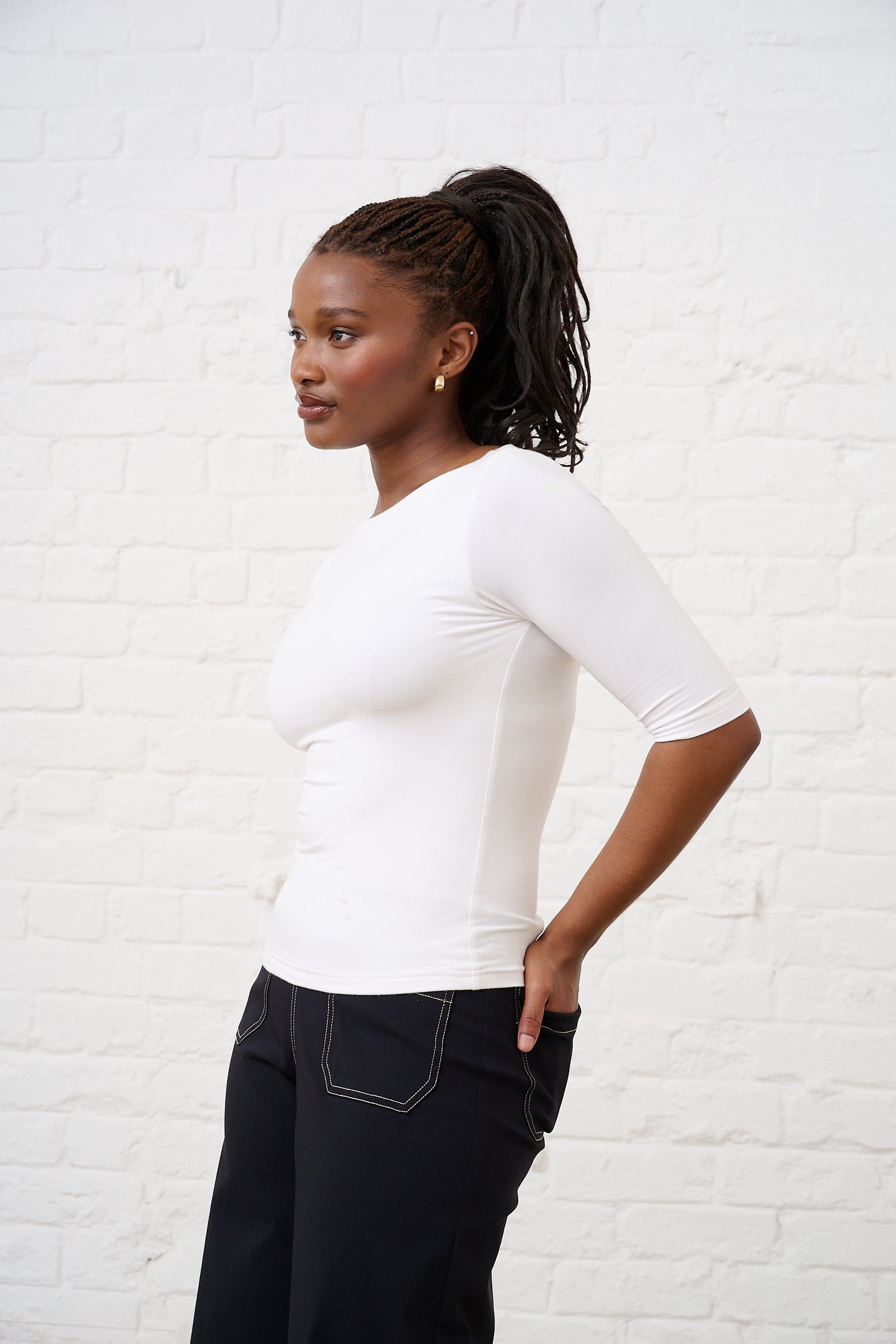 Ribbed Basic Tee in Milk