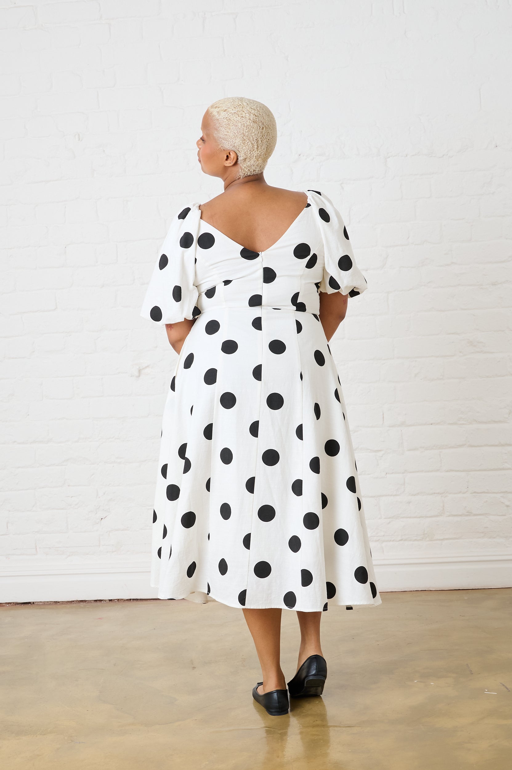Spot Linen Blend Dress with Lace Up Detail