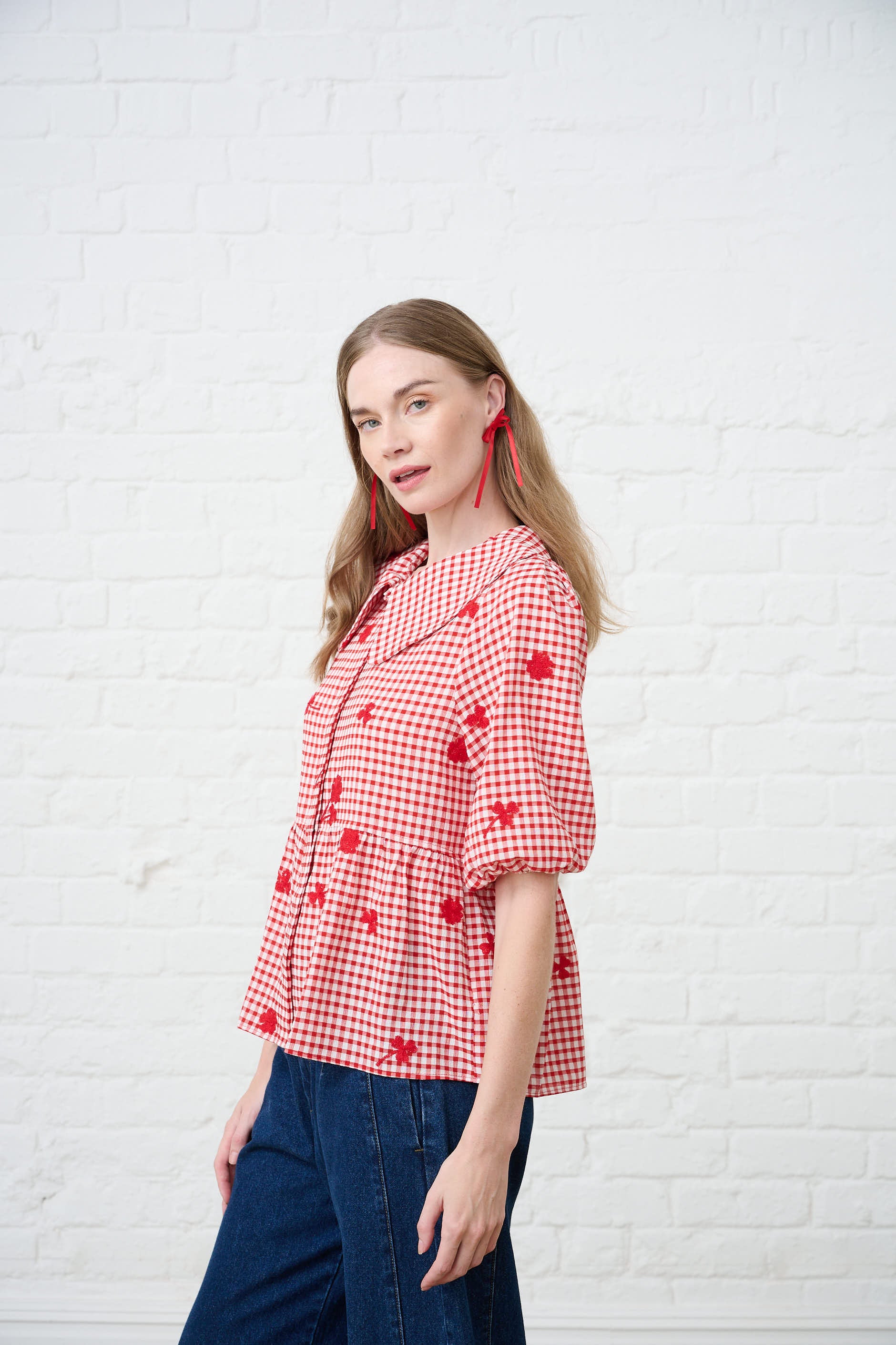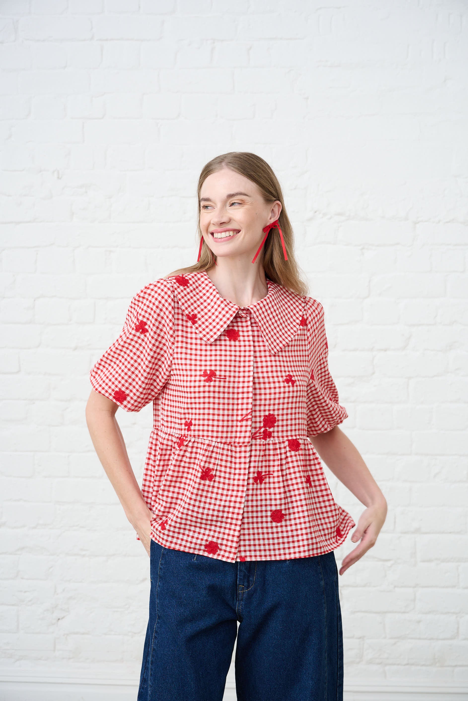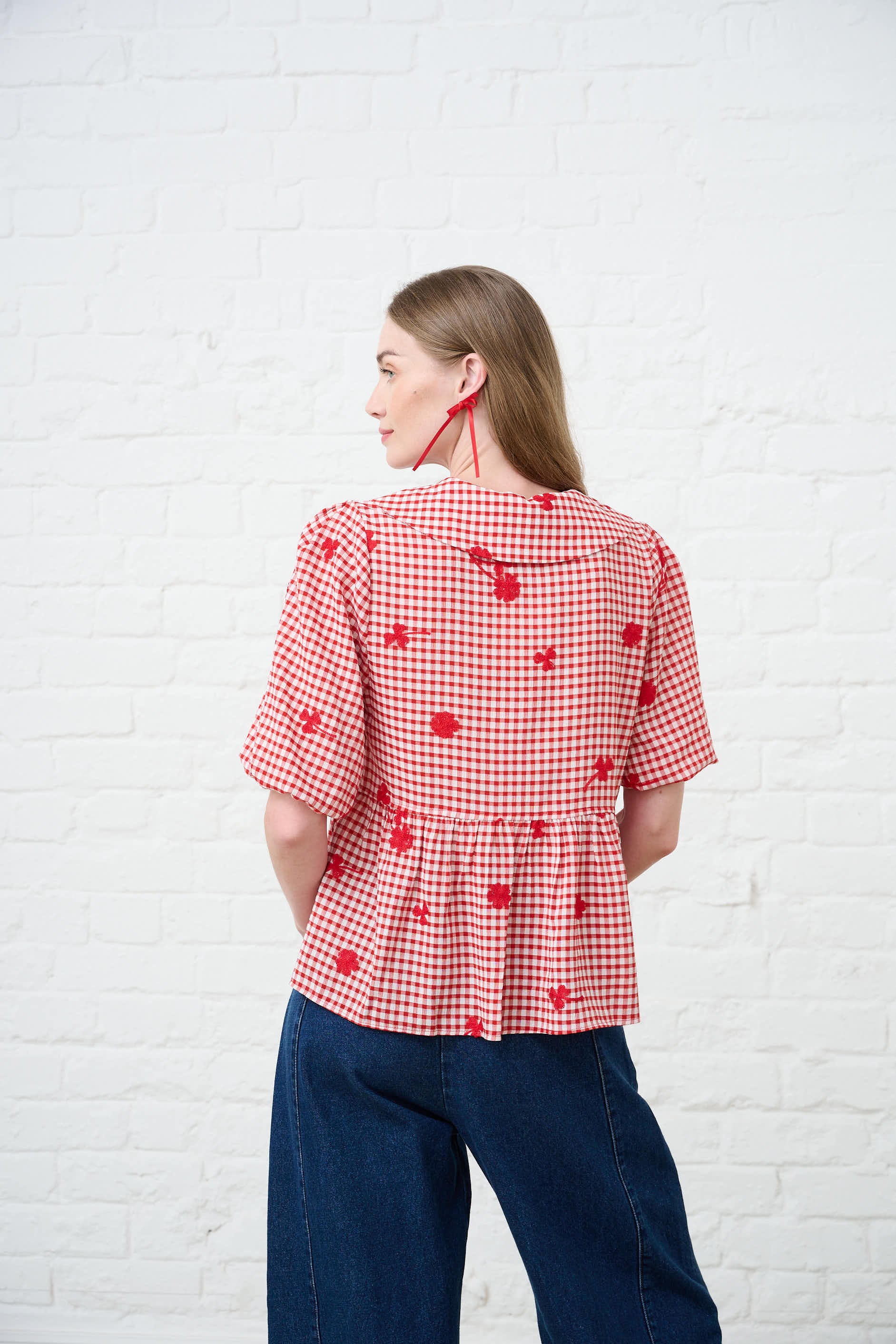 Peplum Blouse in Interest Red Gingham