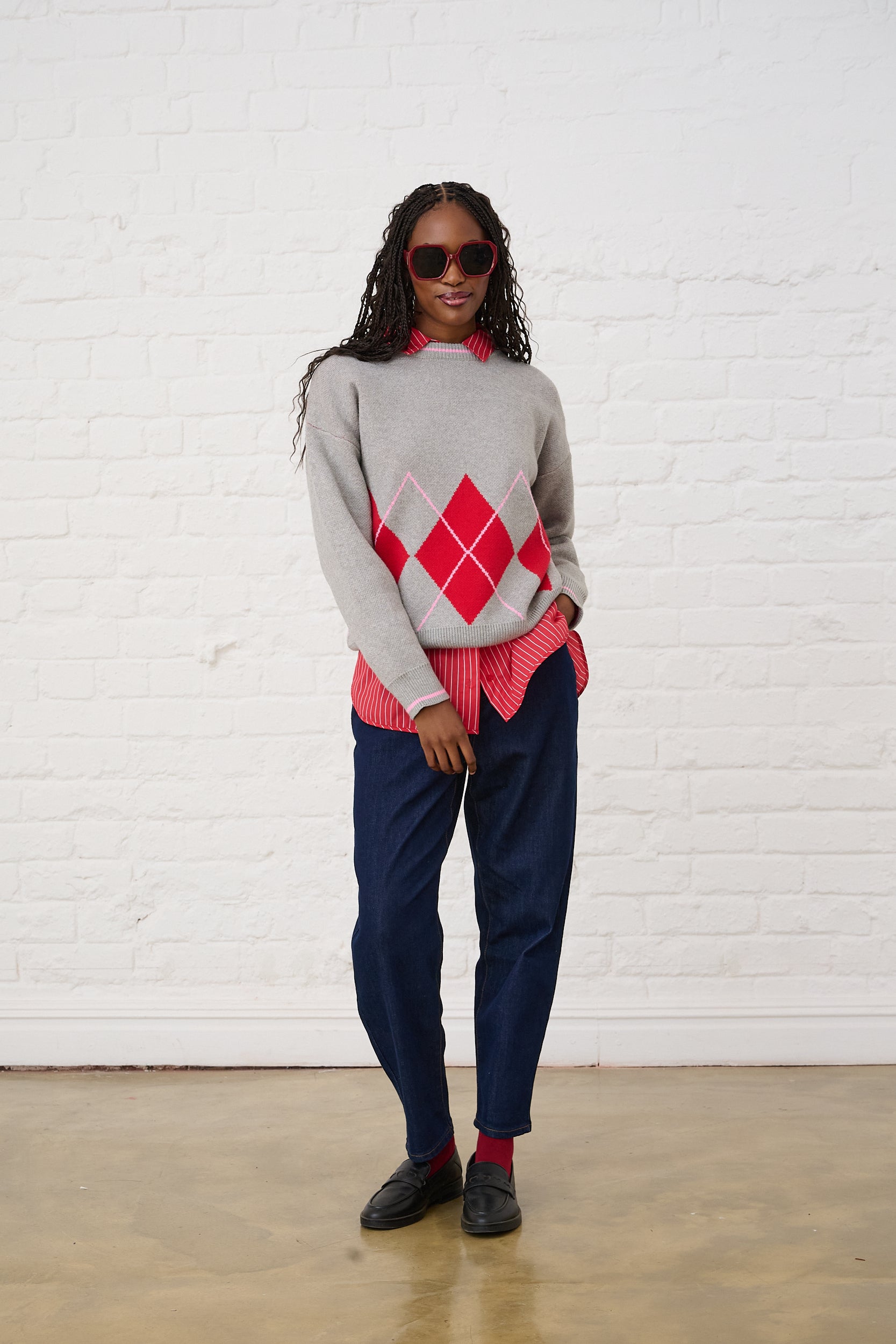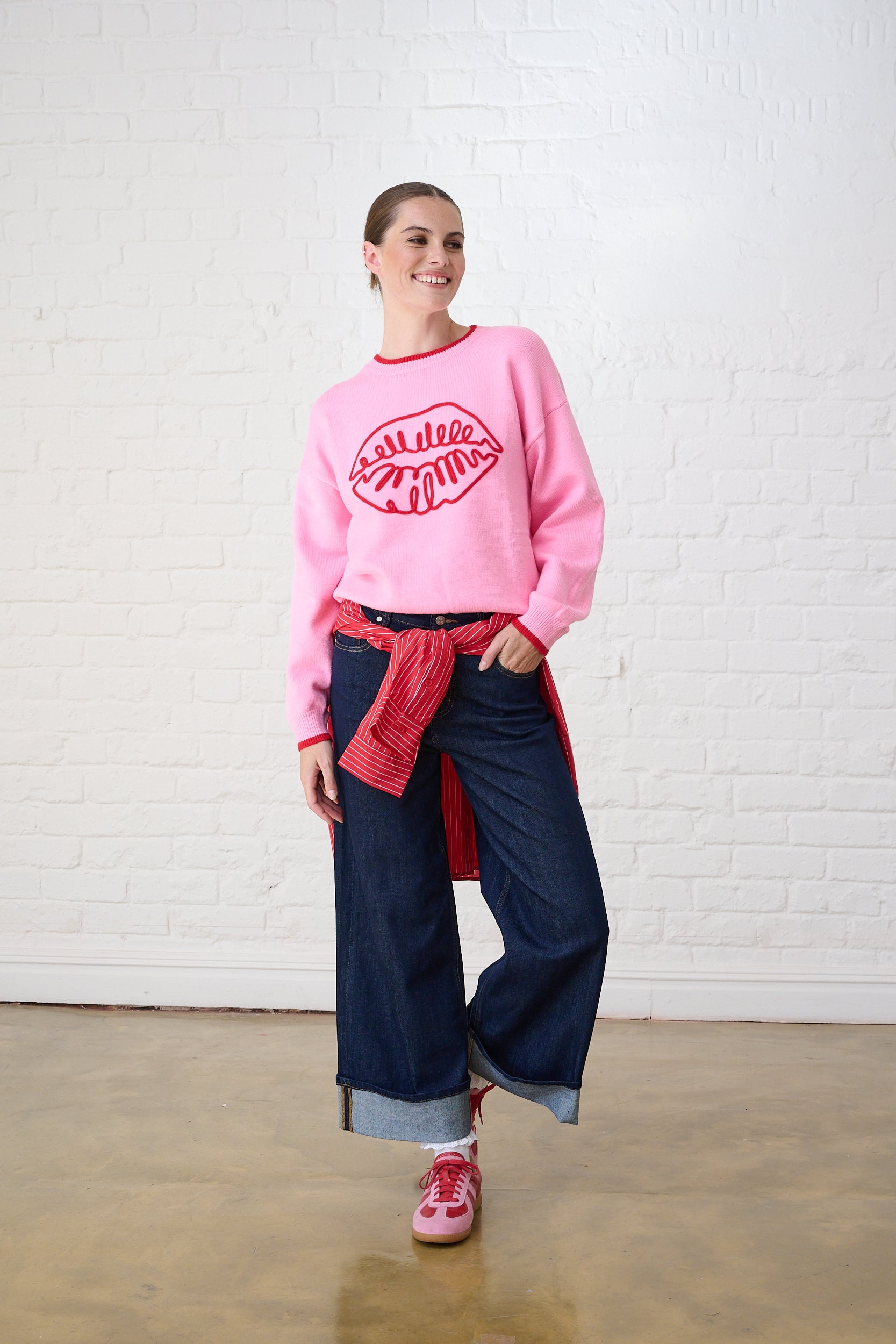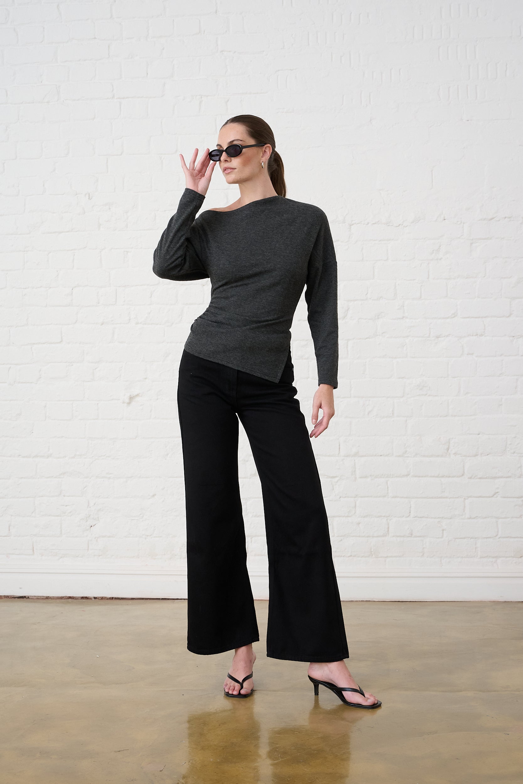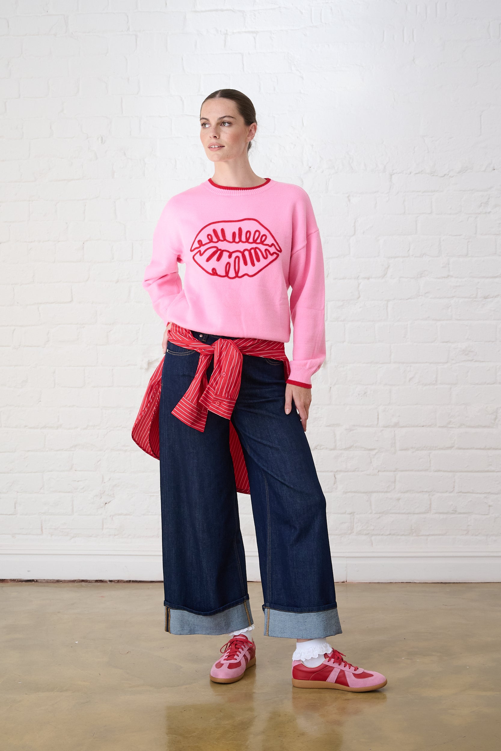 Contour Waist Barrel Leg Jeans in Choc Stripe