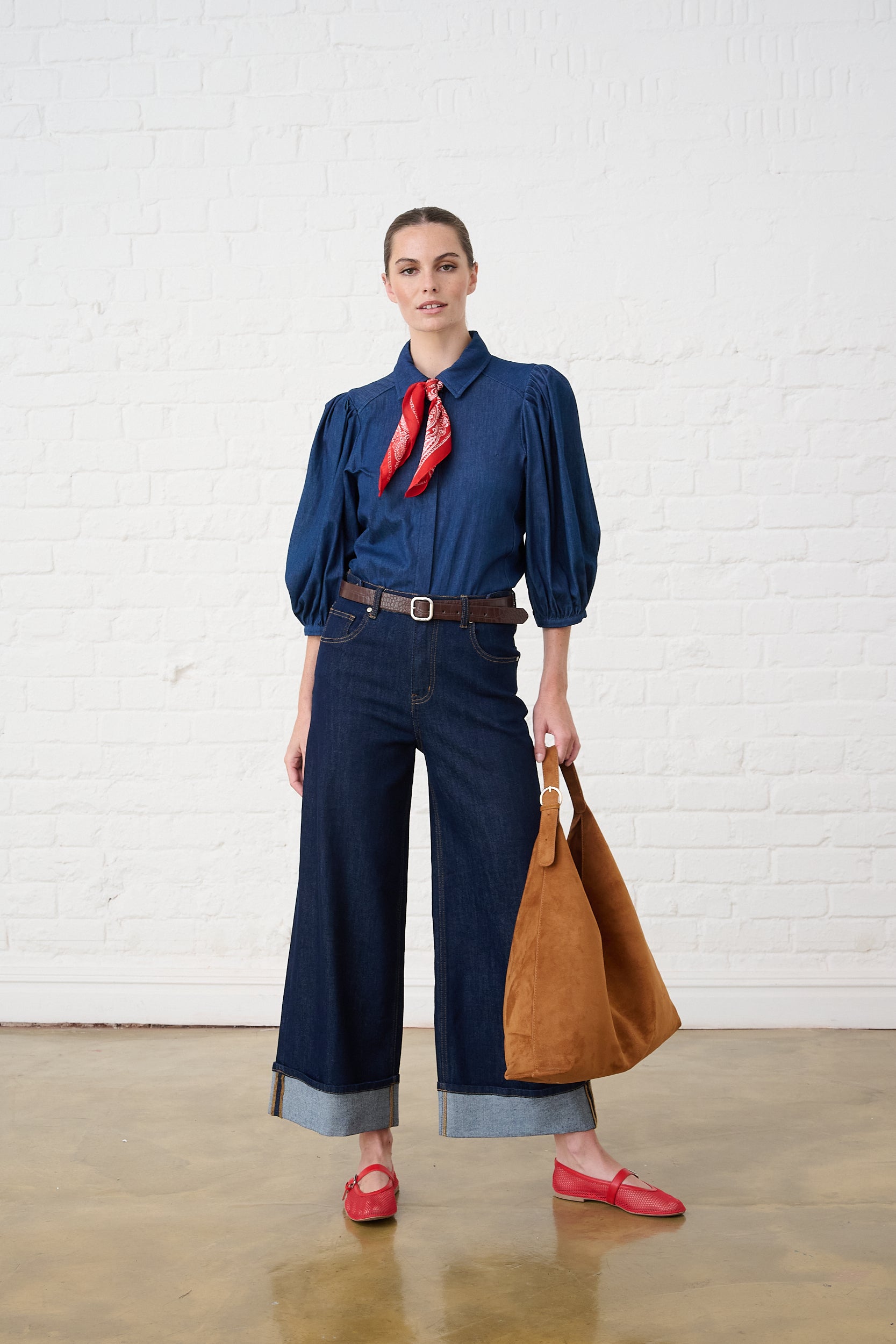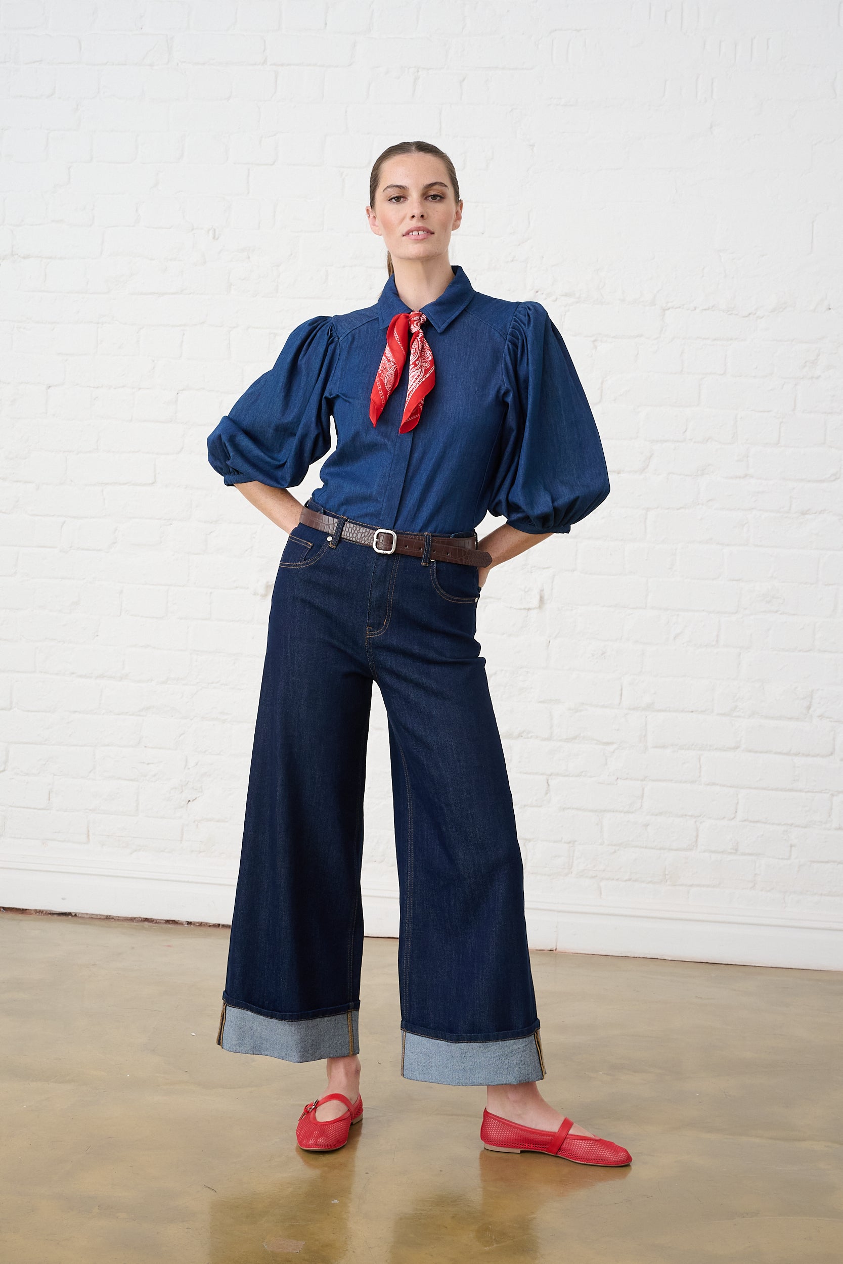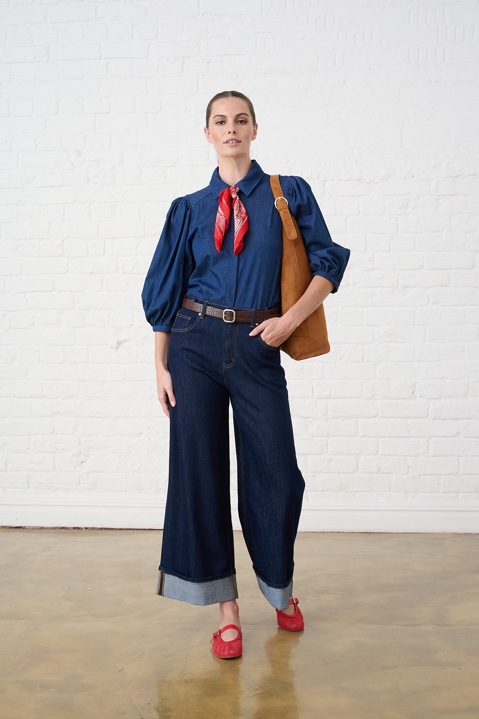 Navy Premium Elasticated Waist Wide Leg Joggers