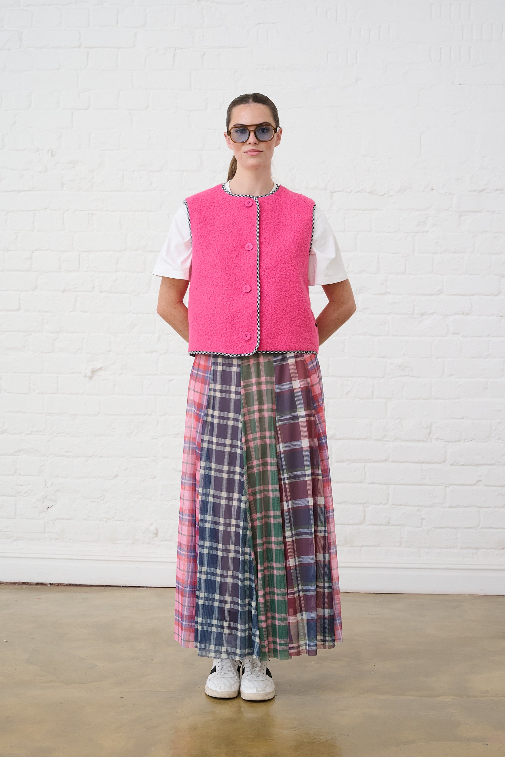 Panelled Mesh Skirt in Multi Check