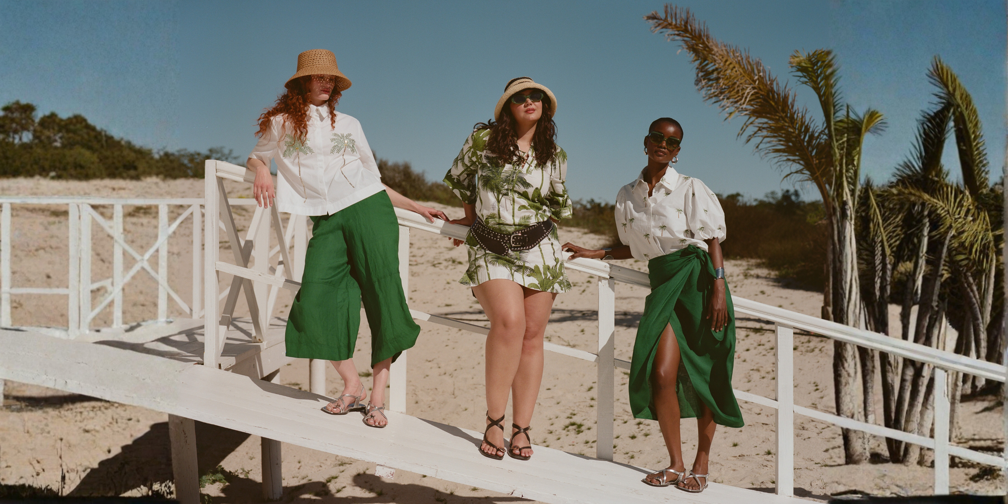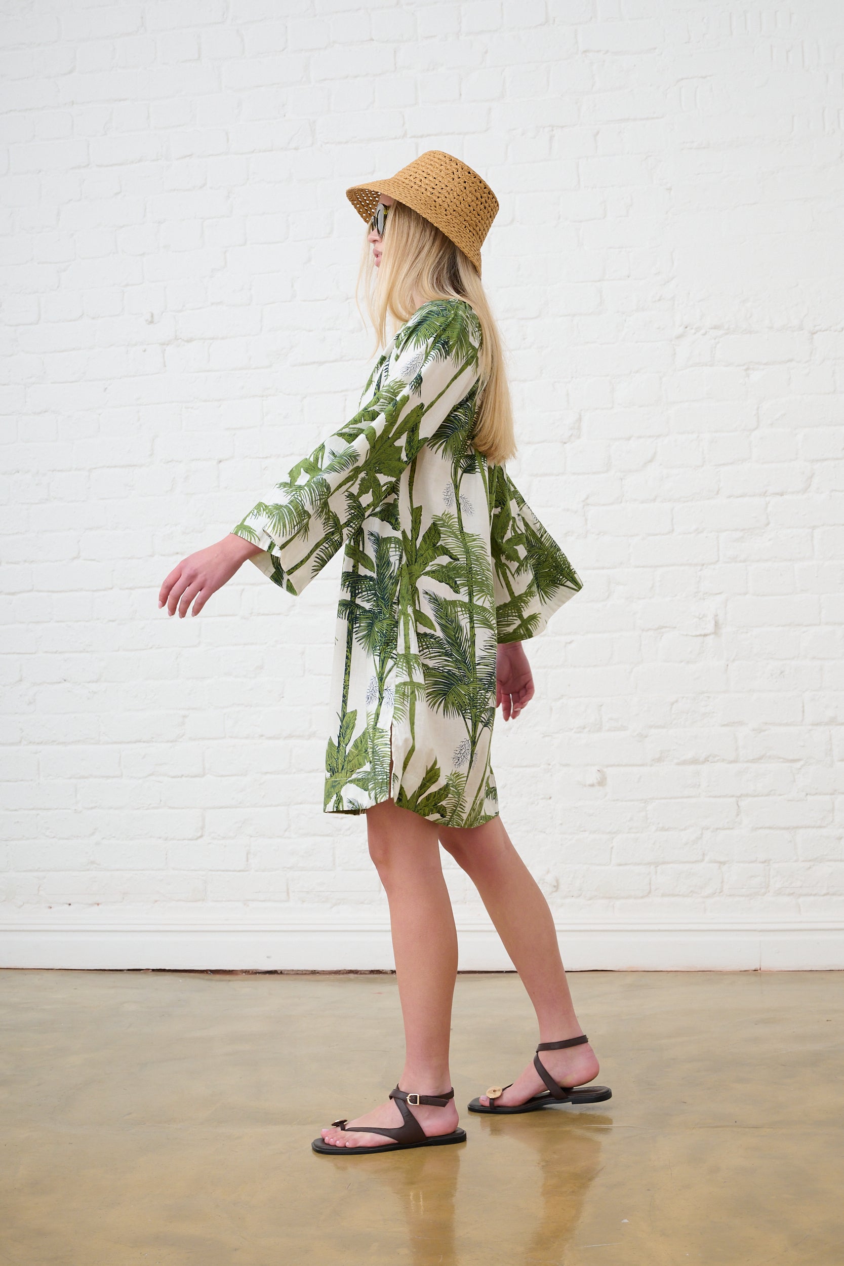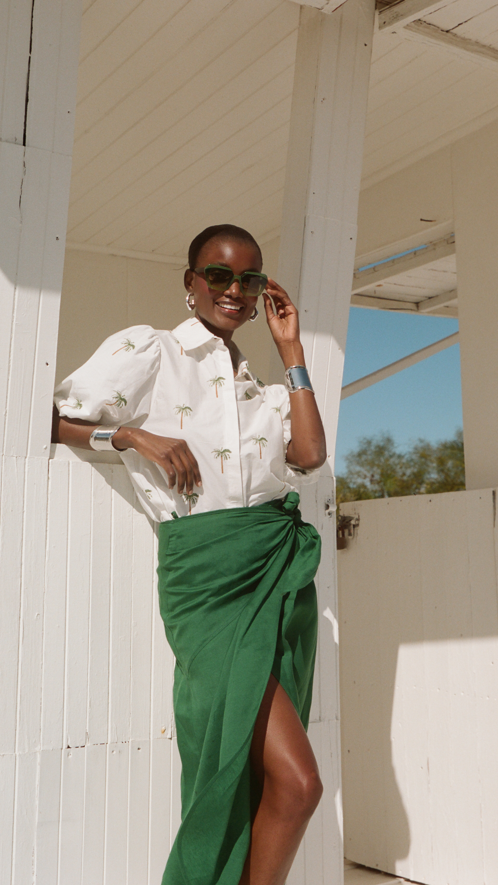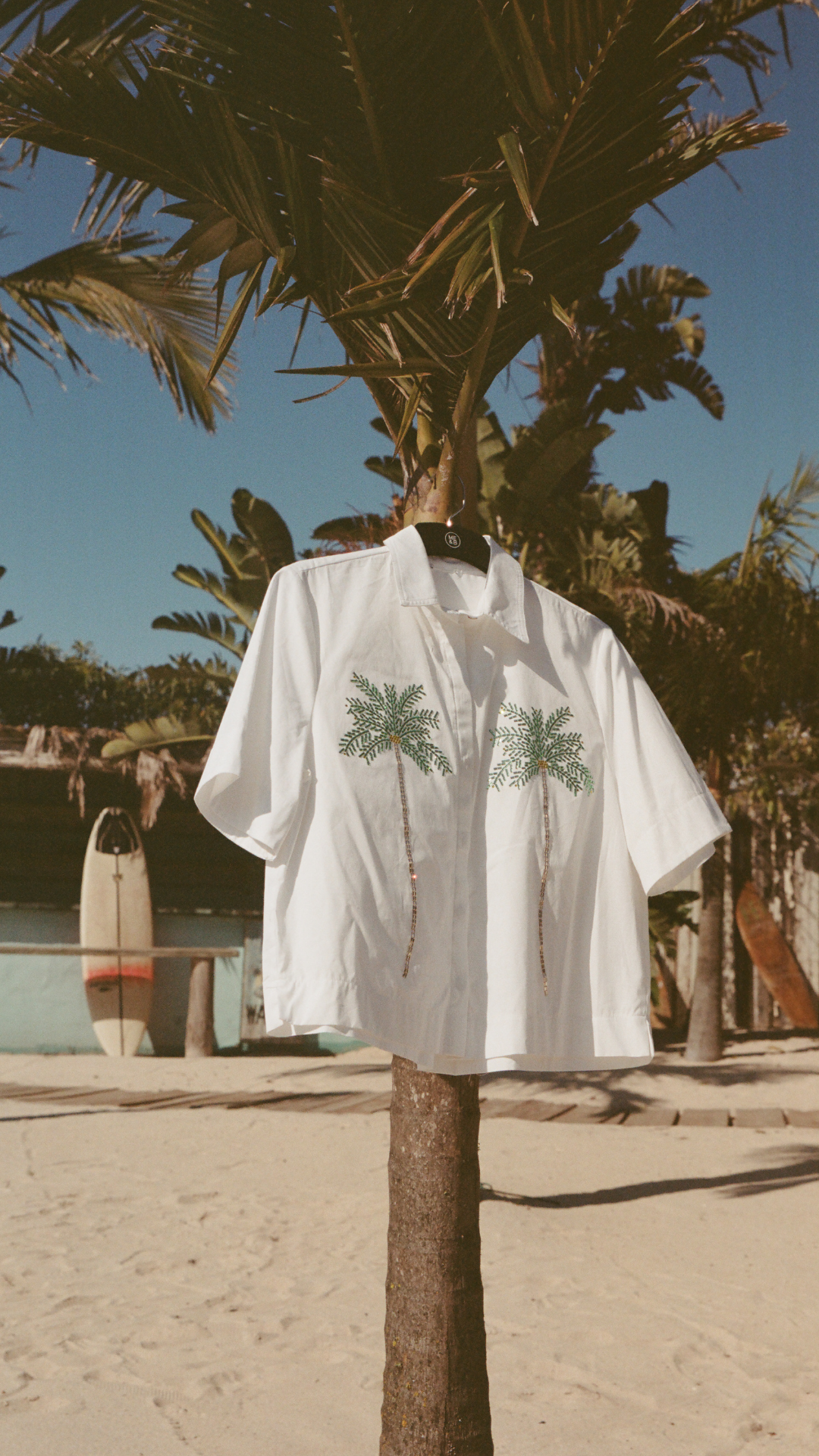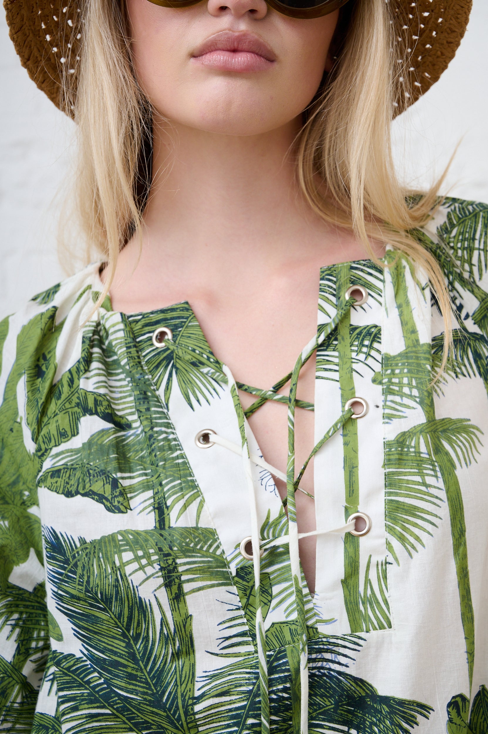 Balloon Sleeve Shirt in Embroidered Palm Tree