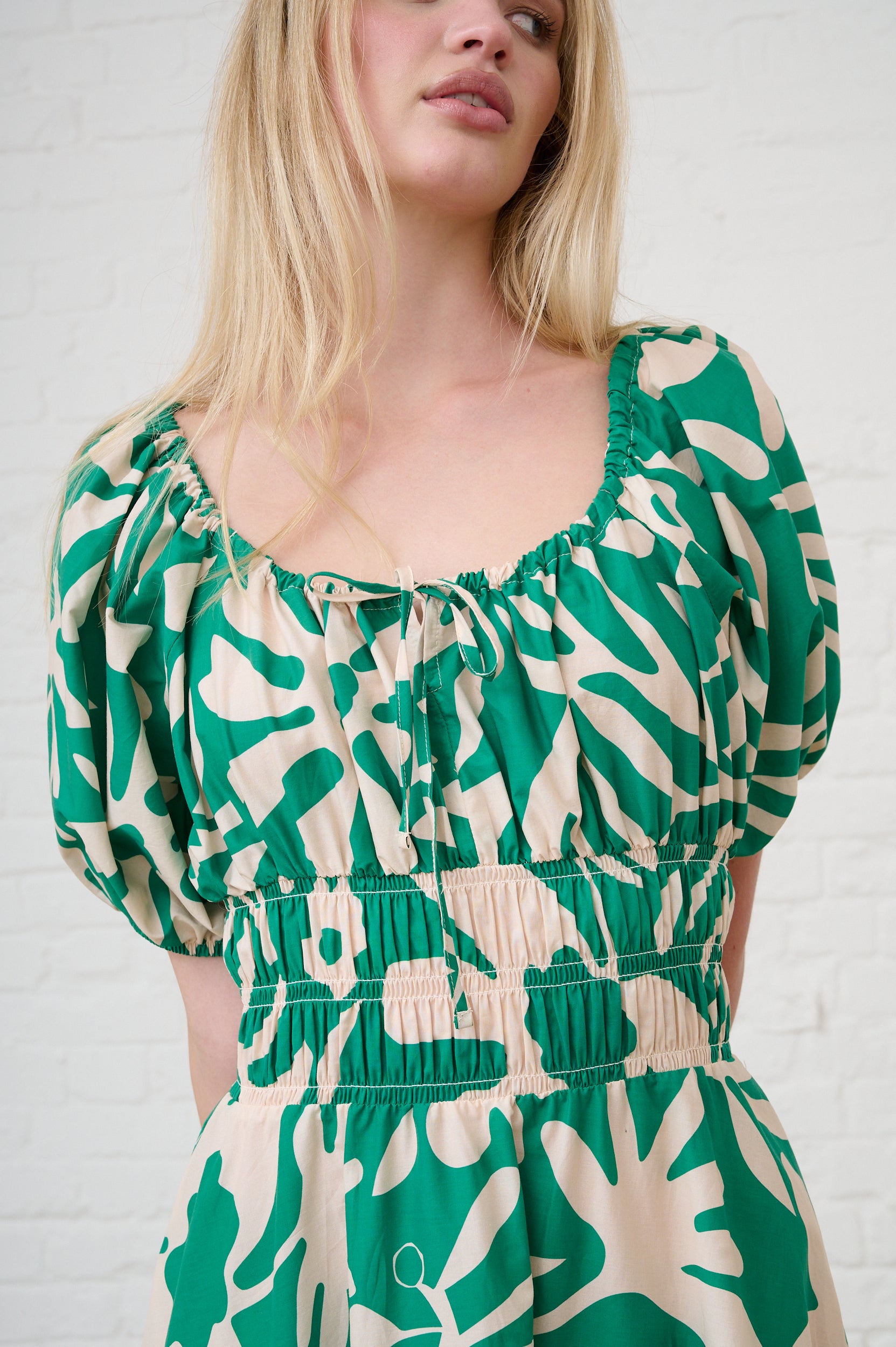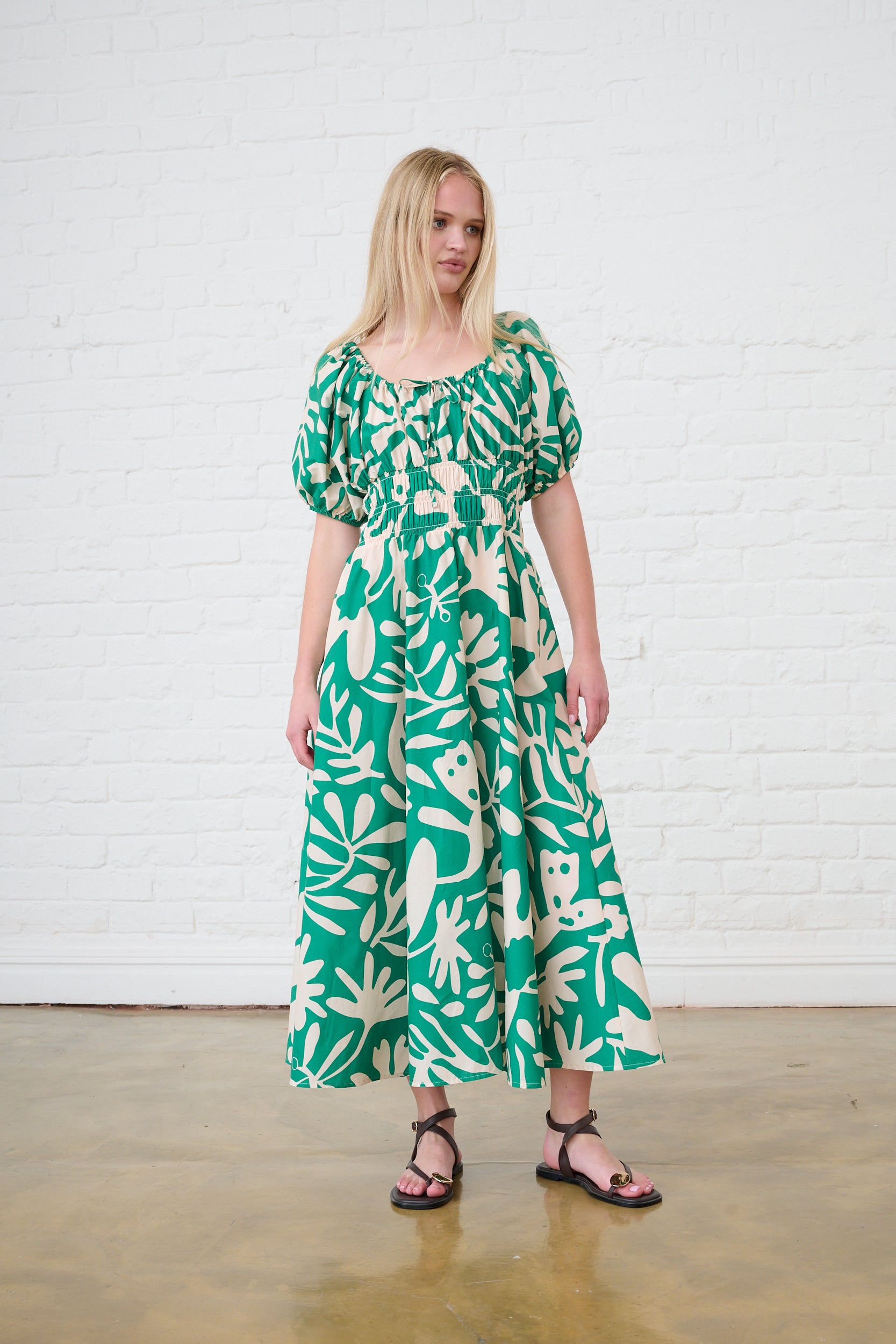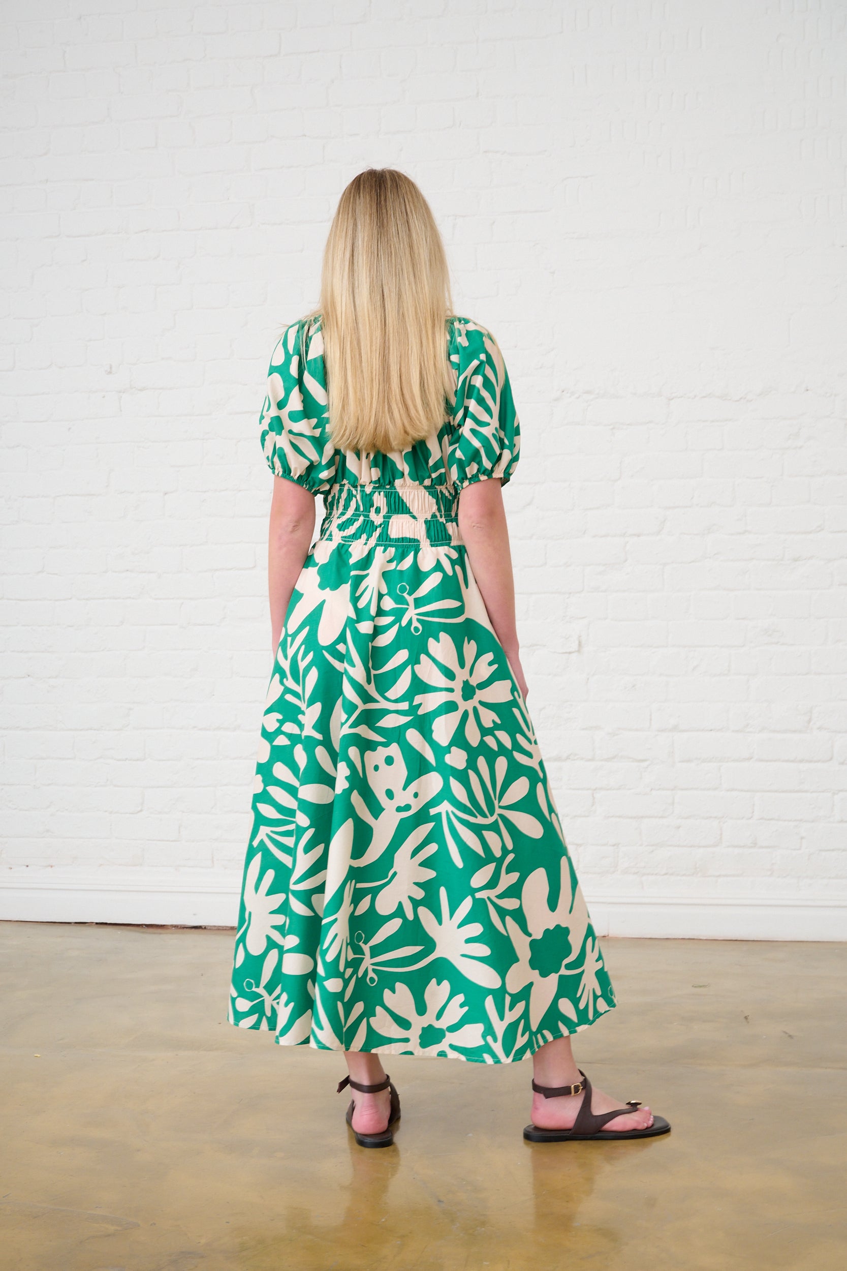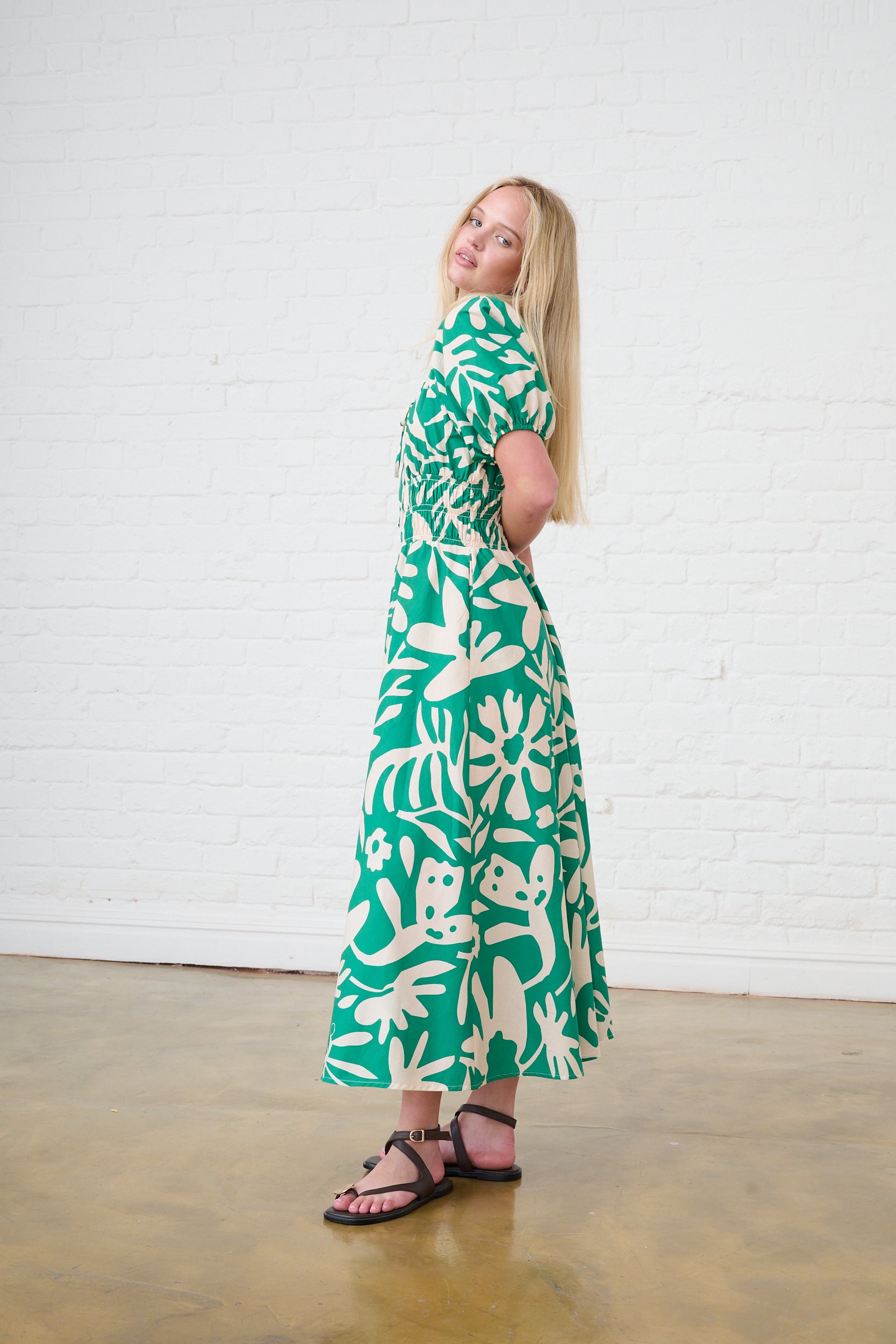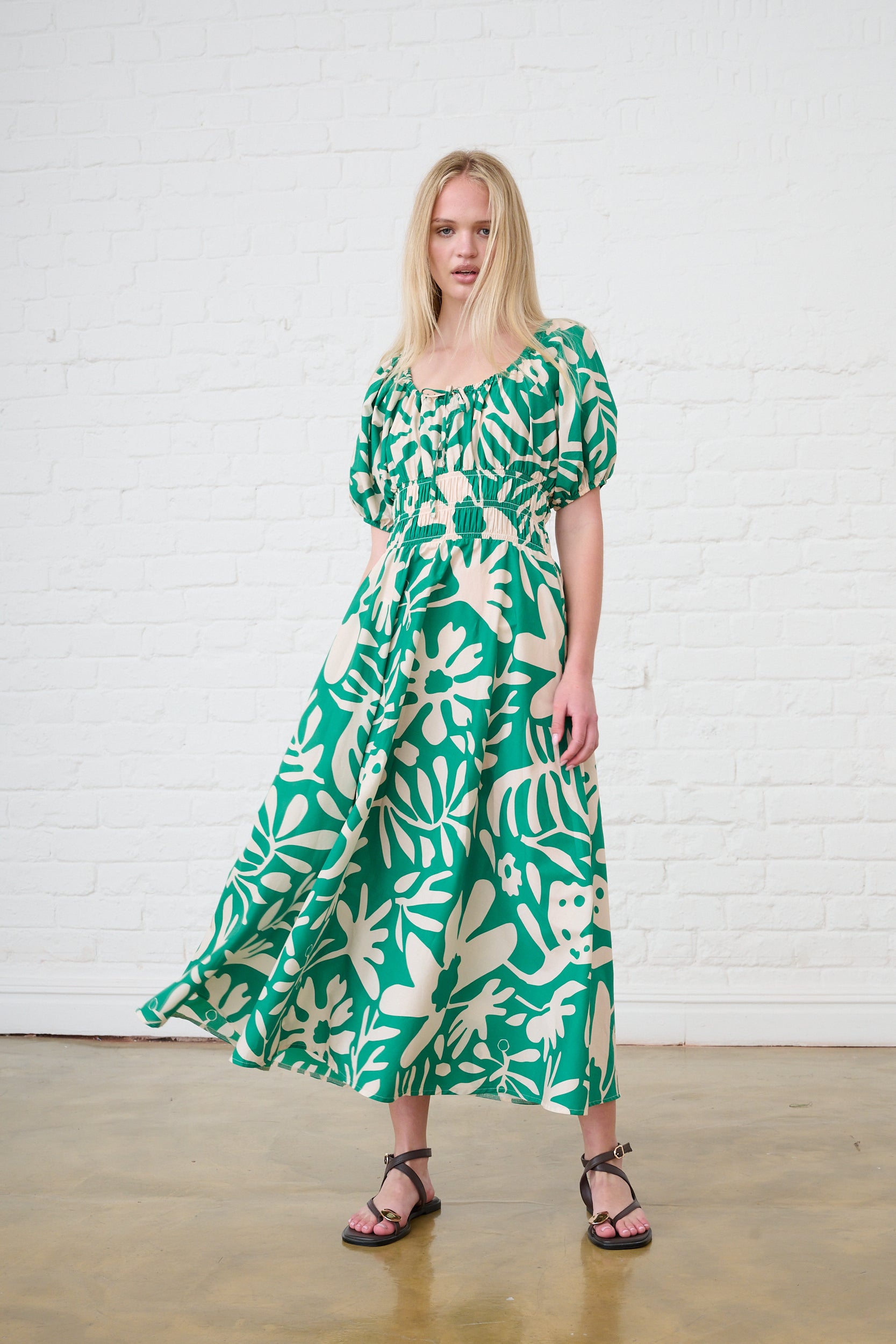 Shaped Hip Smocked Maxi Dress in Tropicana