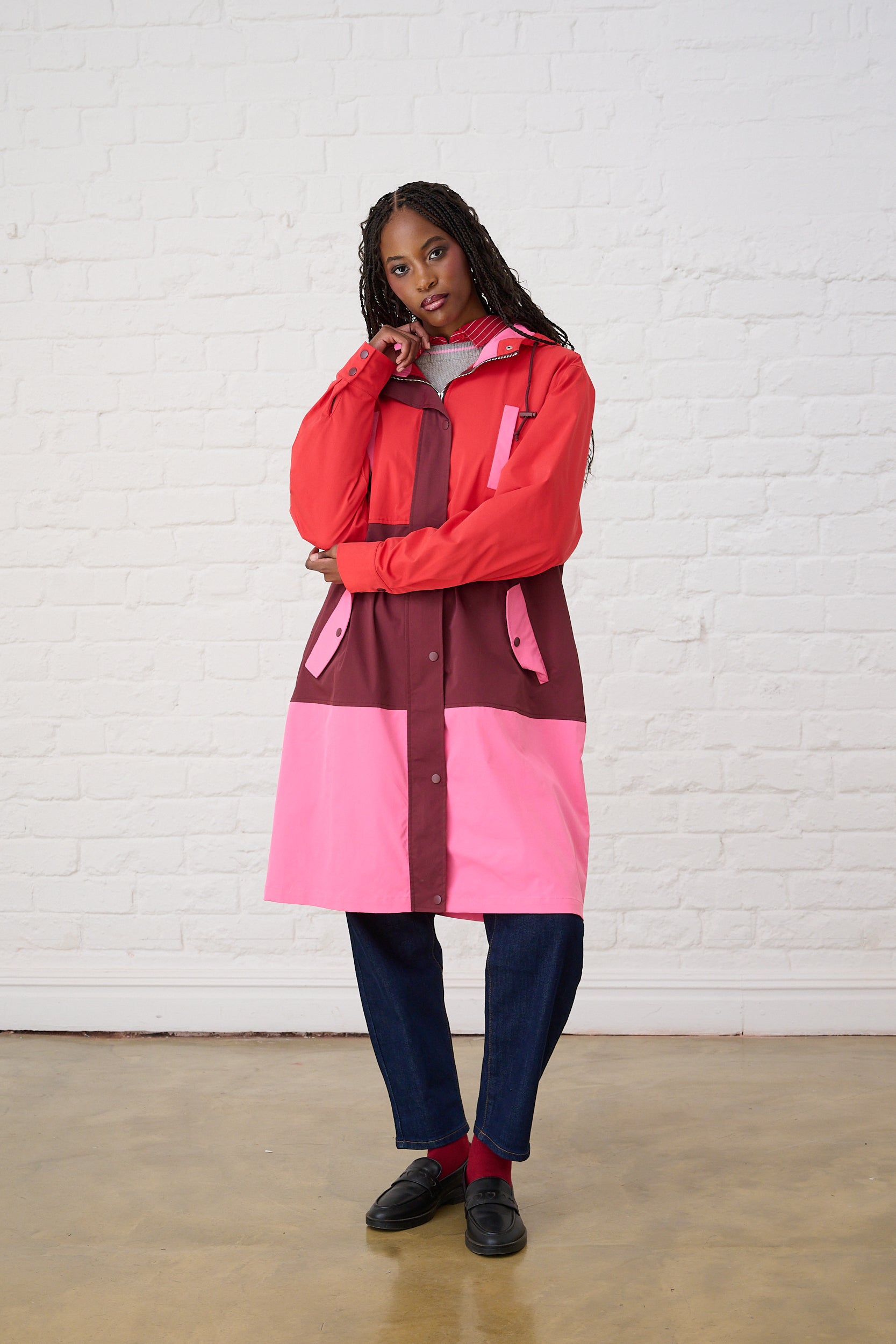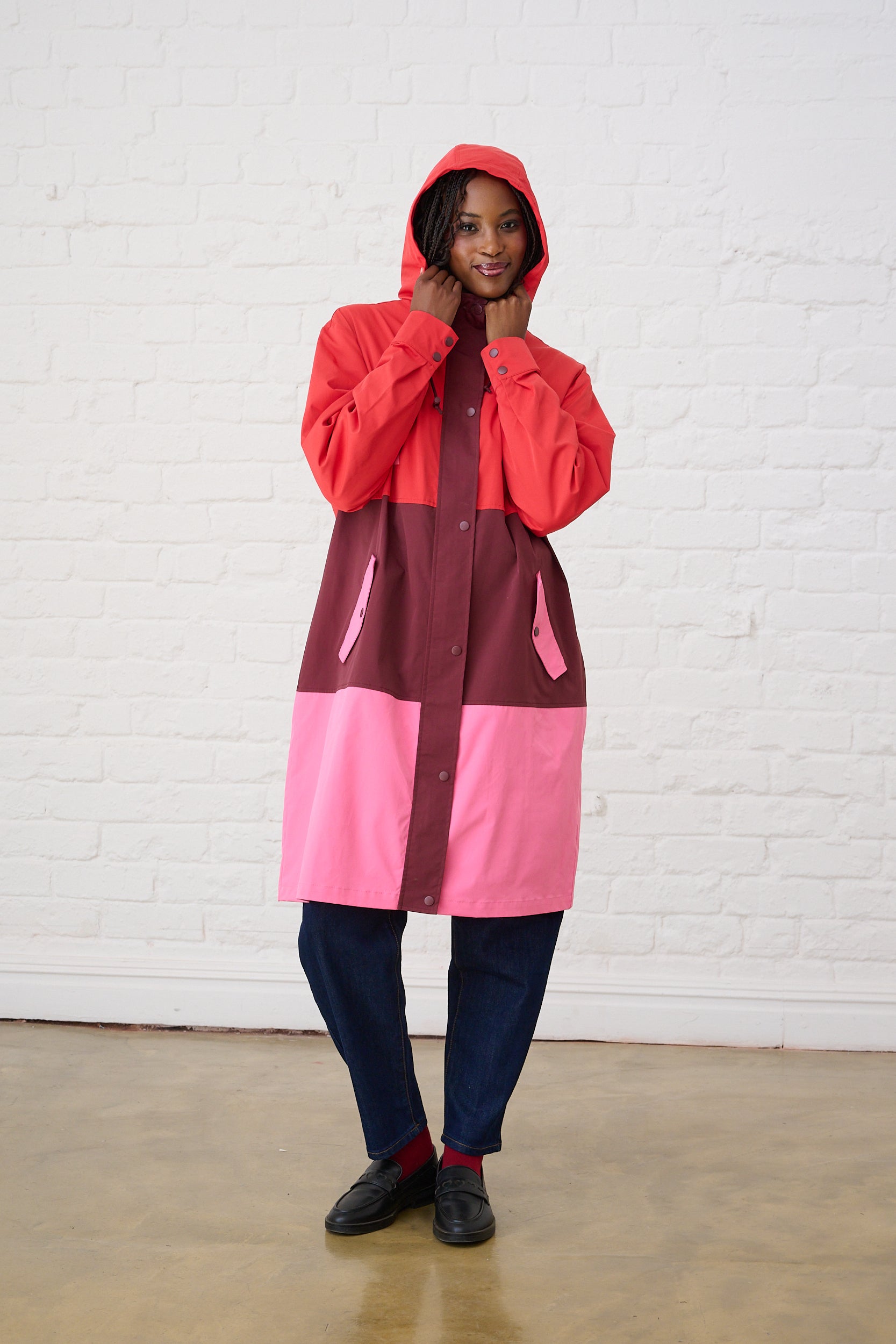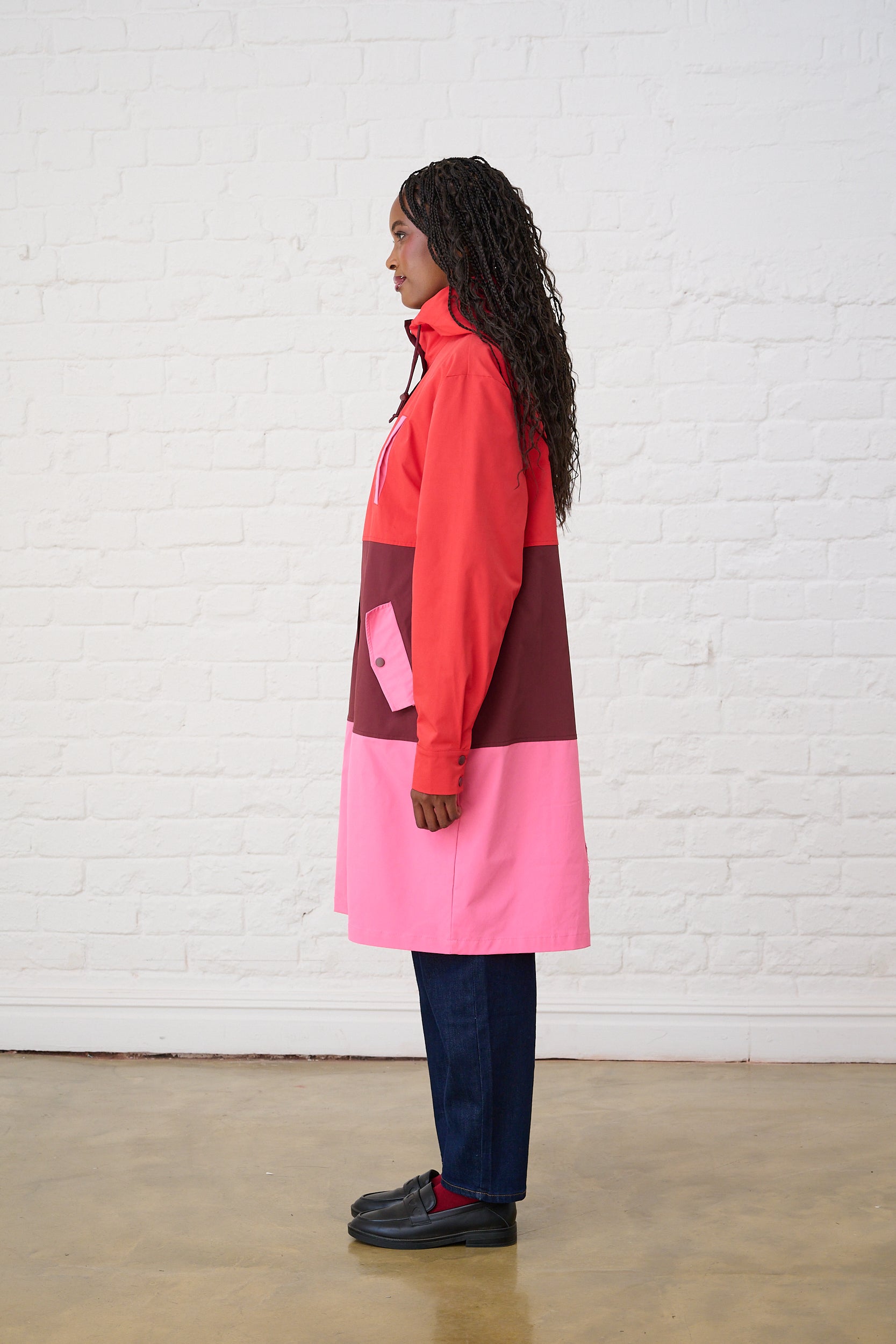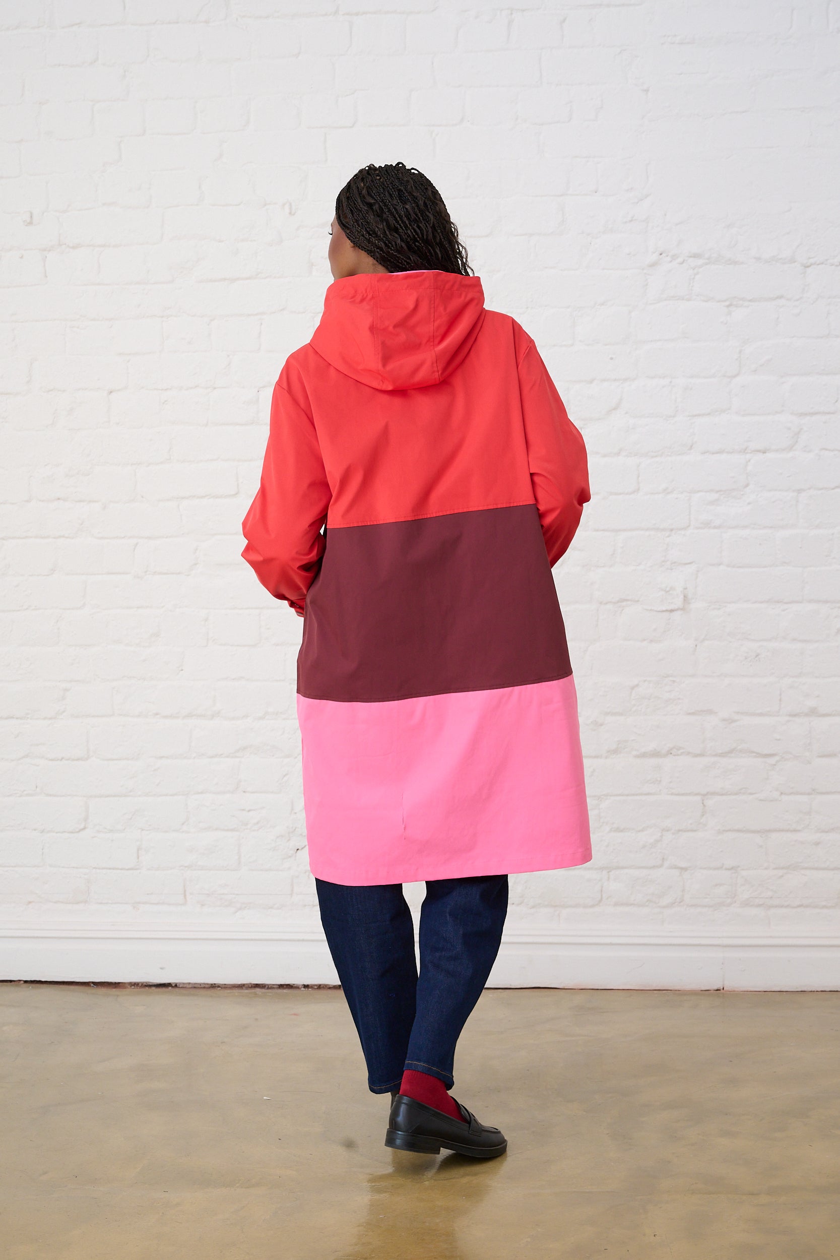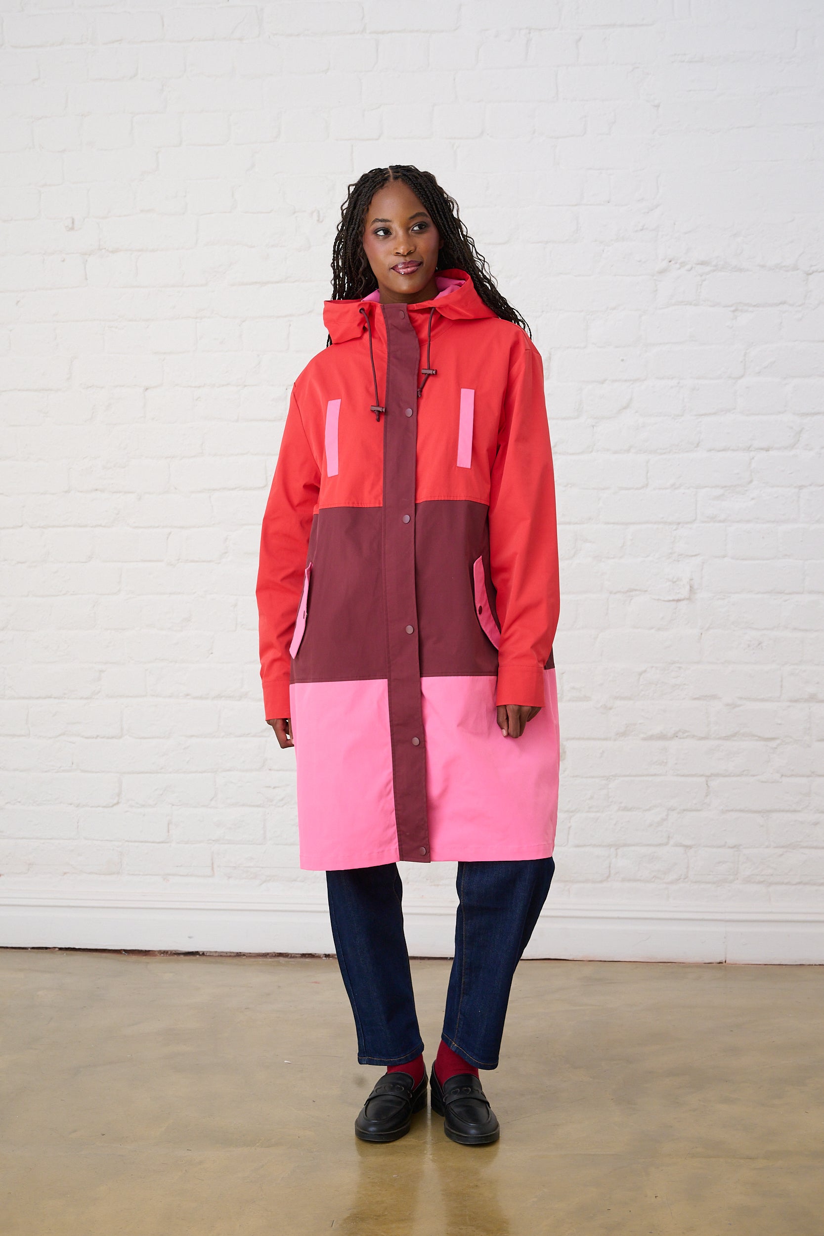 Colourblock Raincoat in Red/Pink