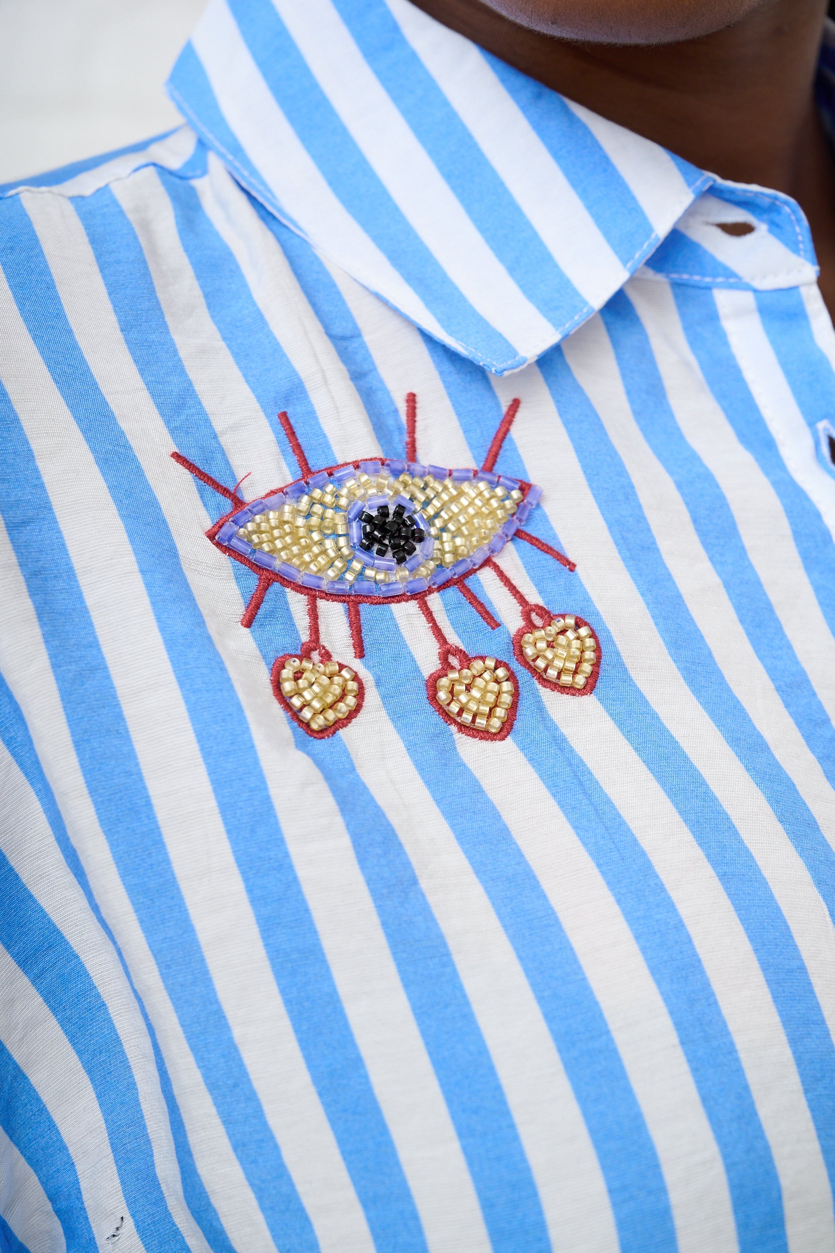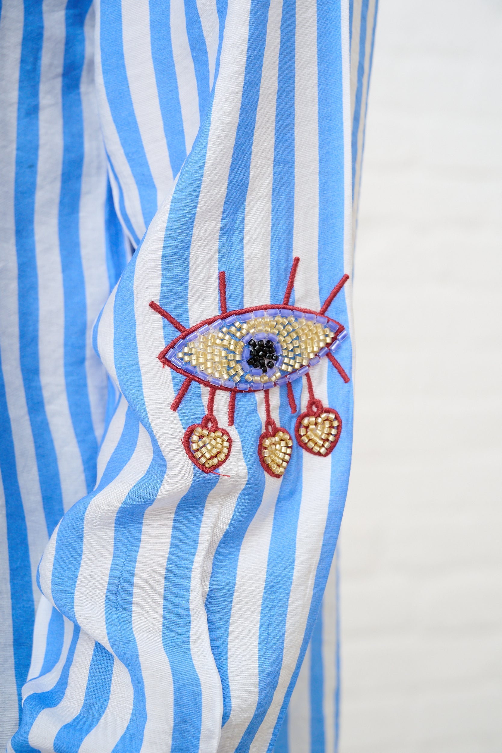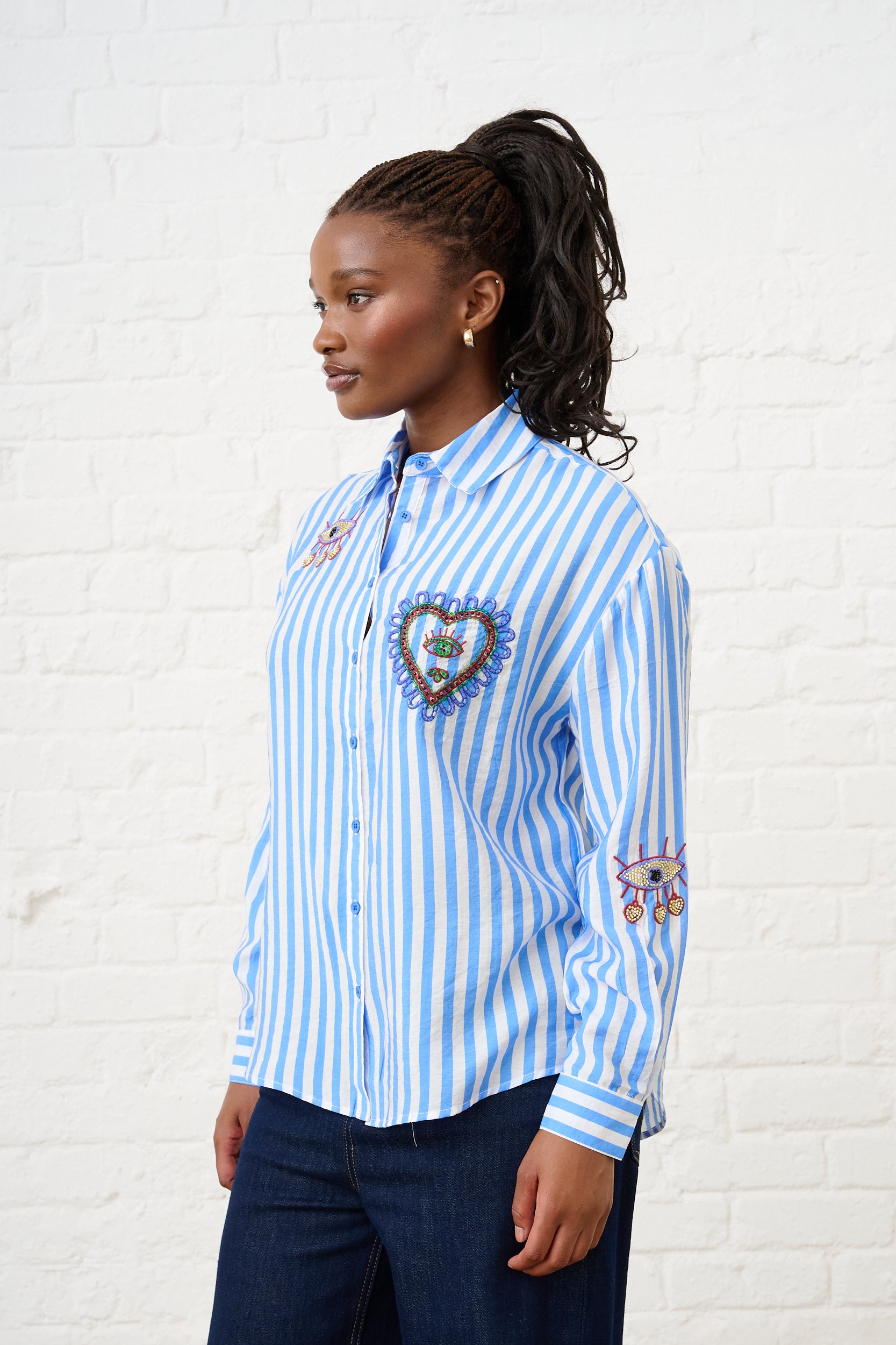 Balloon Sleeve Shirt in Embroidered Palm Tree