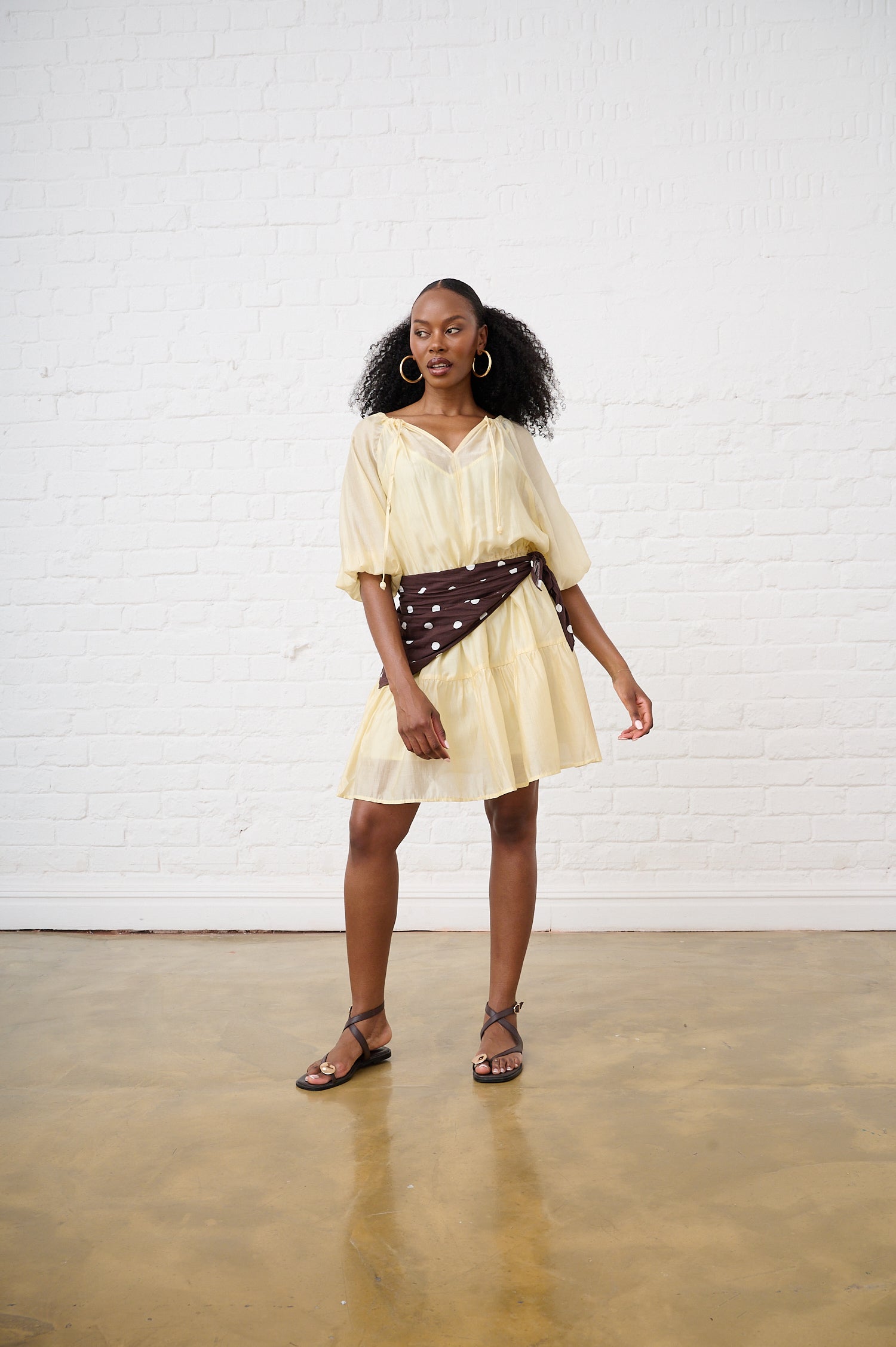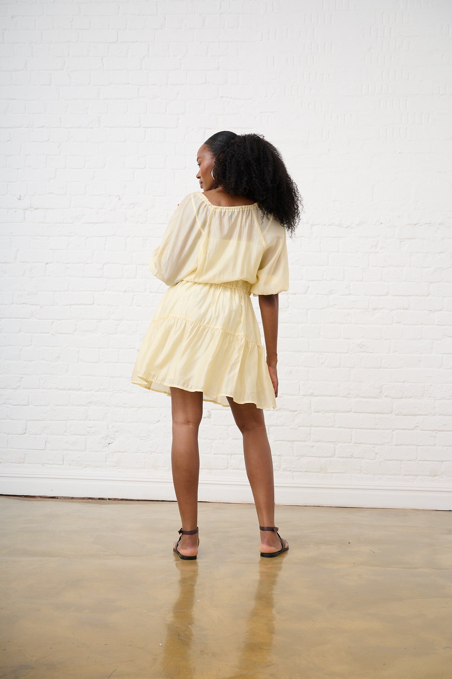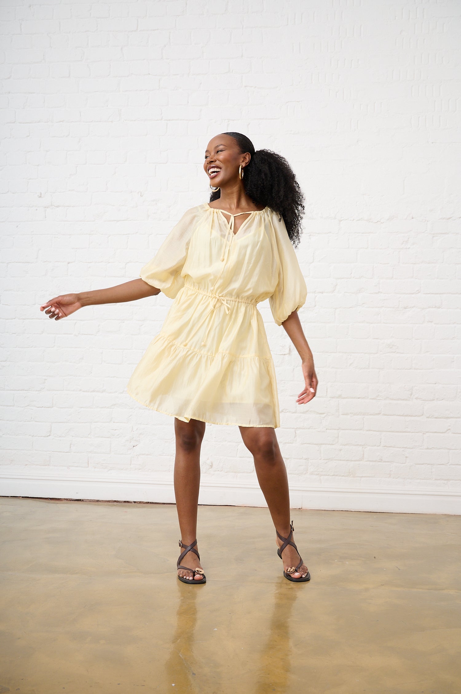 Pastel Blue Puff Sleeve Brocade Party Mini Dress