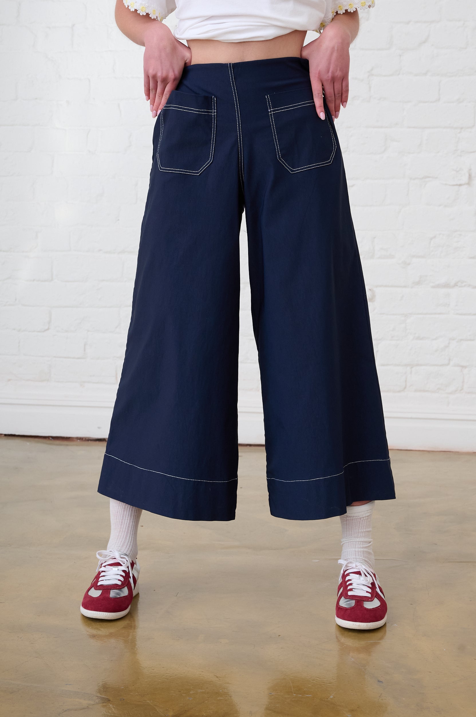 Stretch Wide Leg Cropped Pants in Navy