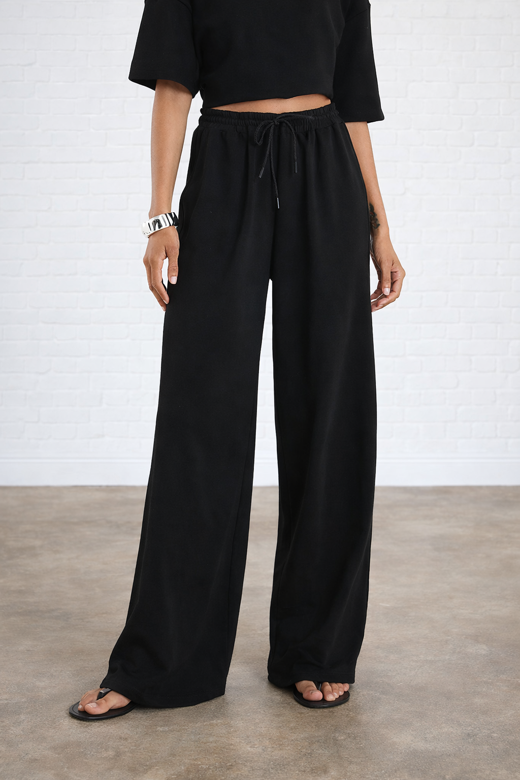 Black Premium Elasticated Waist Wide Leg Joggers