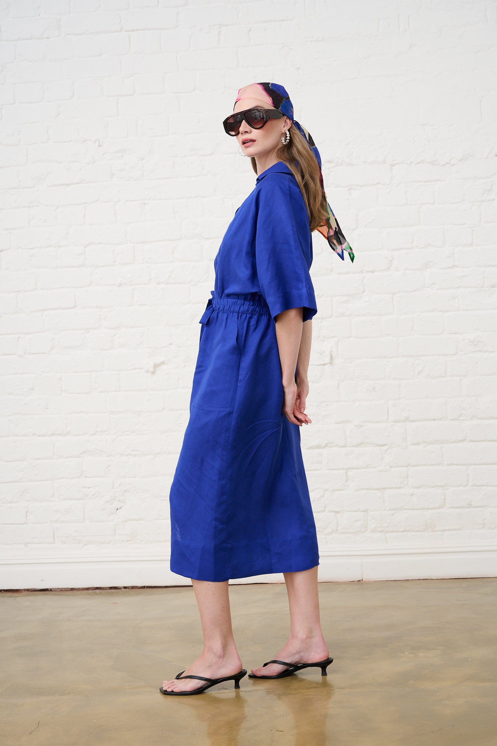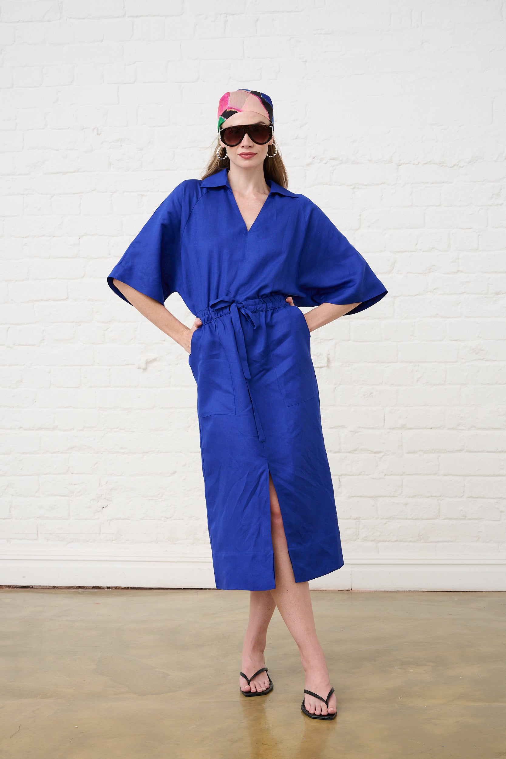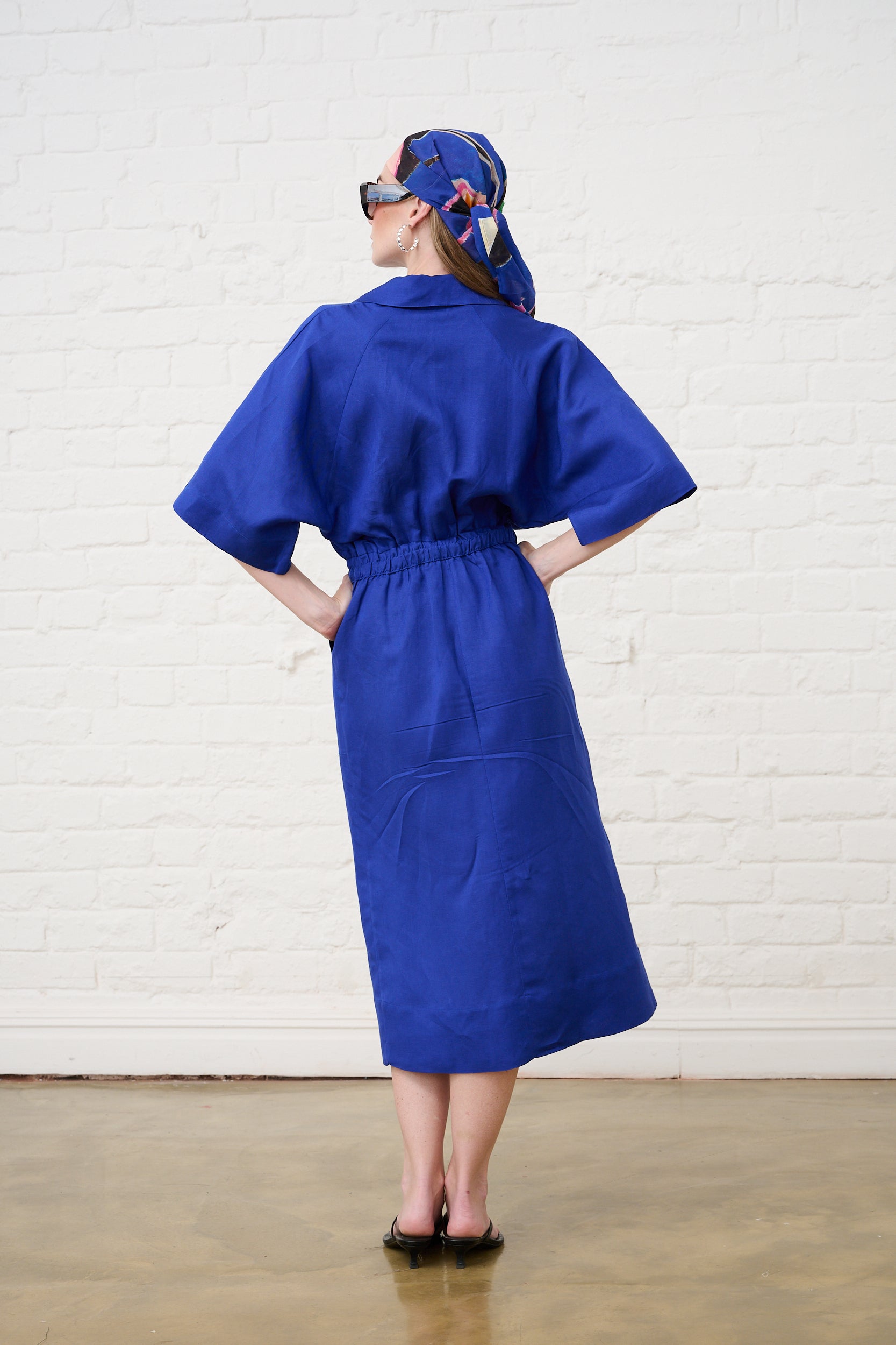 Linen Dolman Sleeve Dress in Cobalt