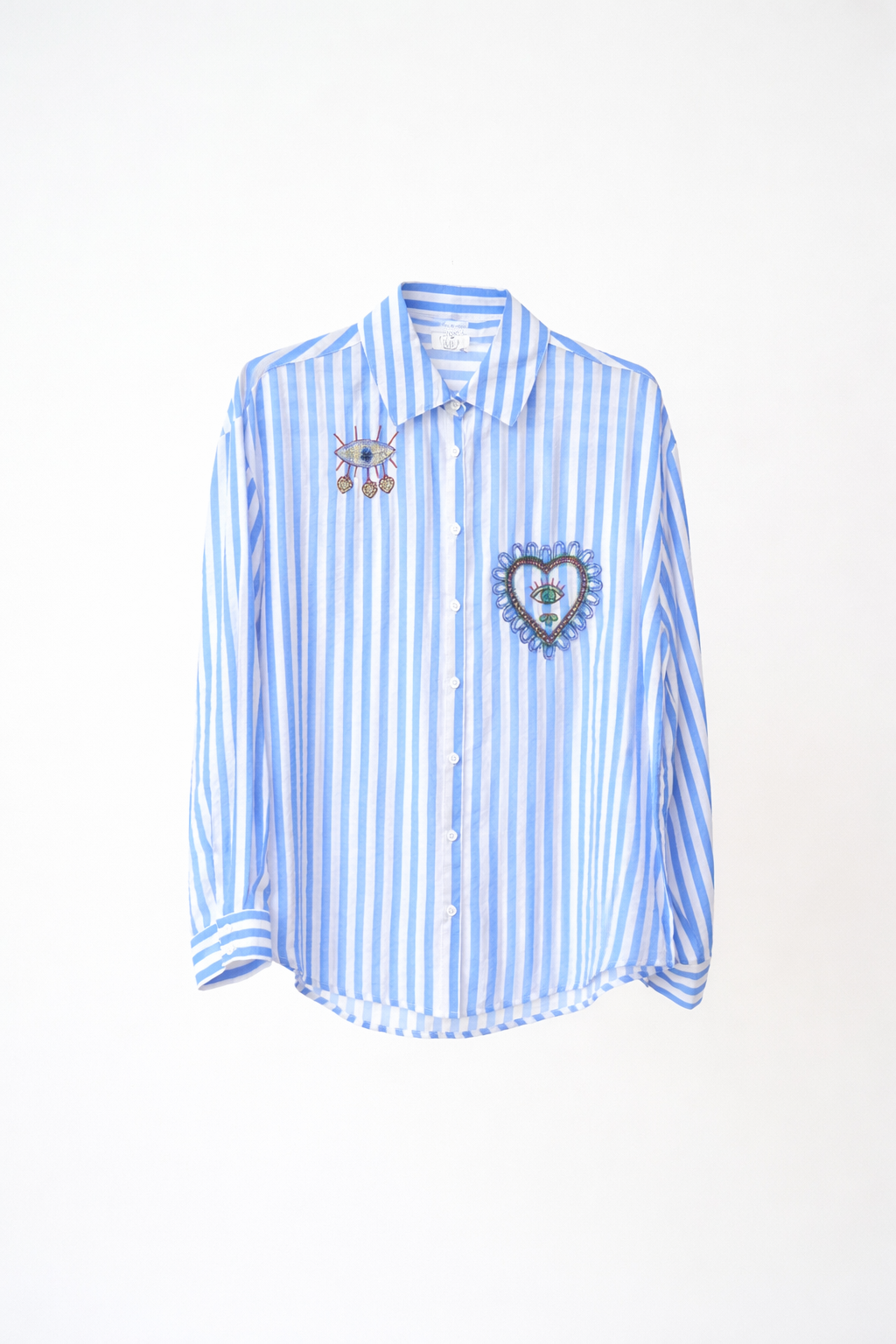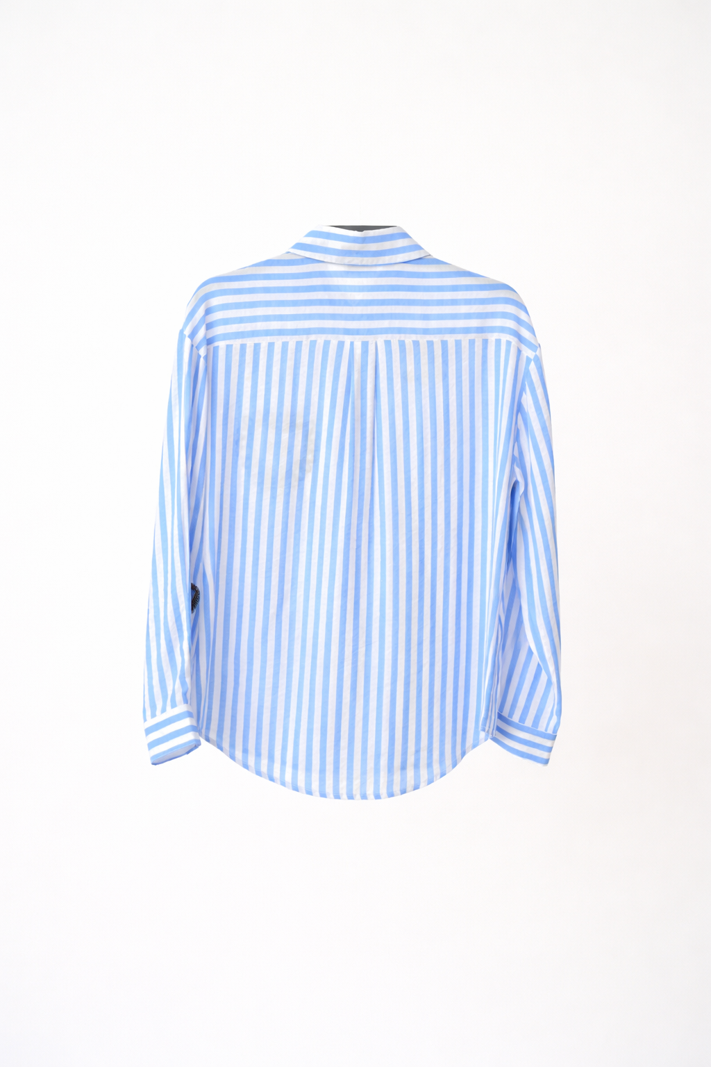 Bellow Sleeve Shirt in Red/Blue Stripe