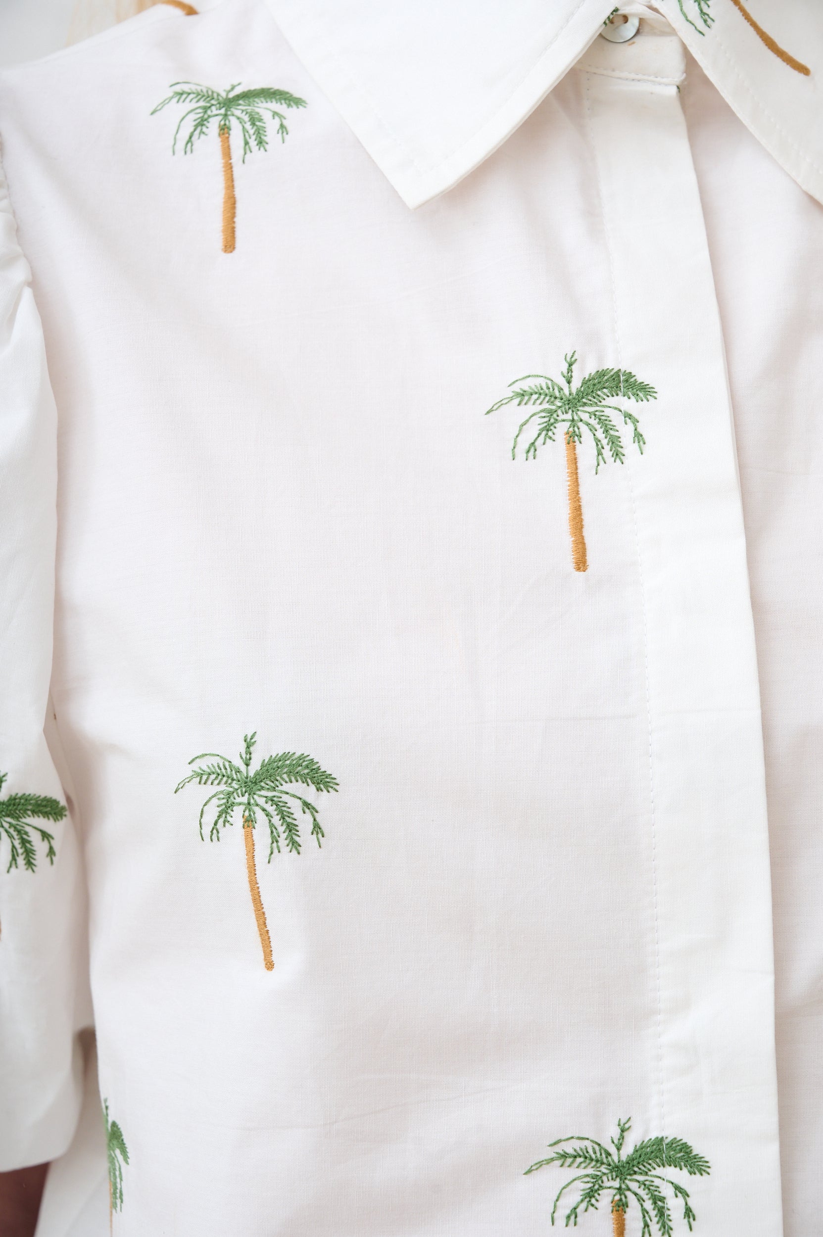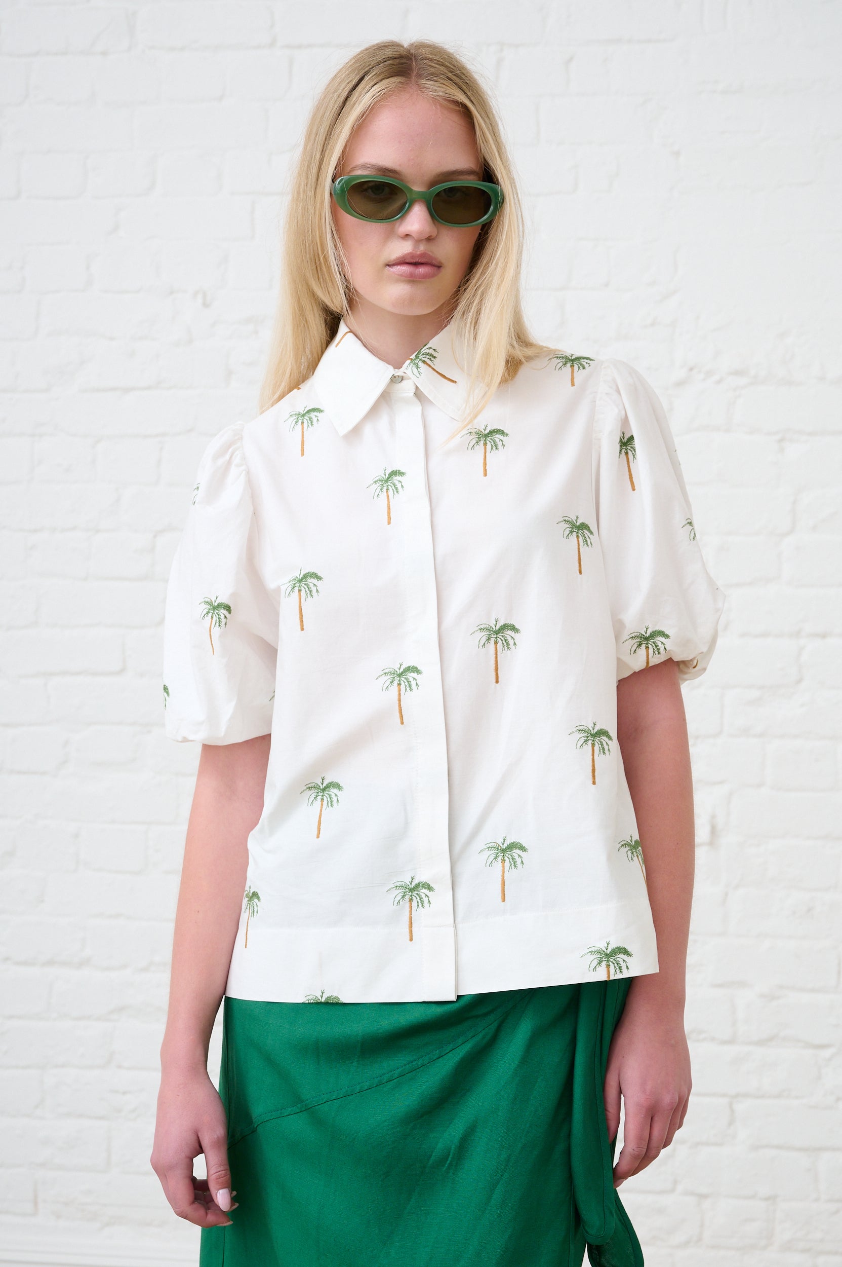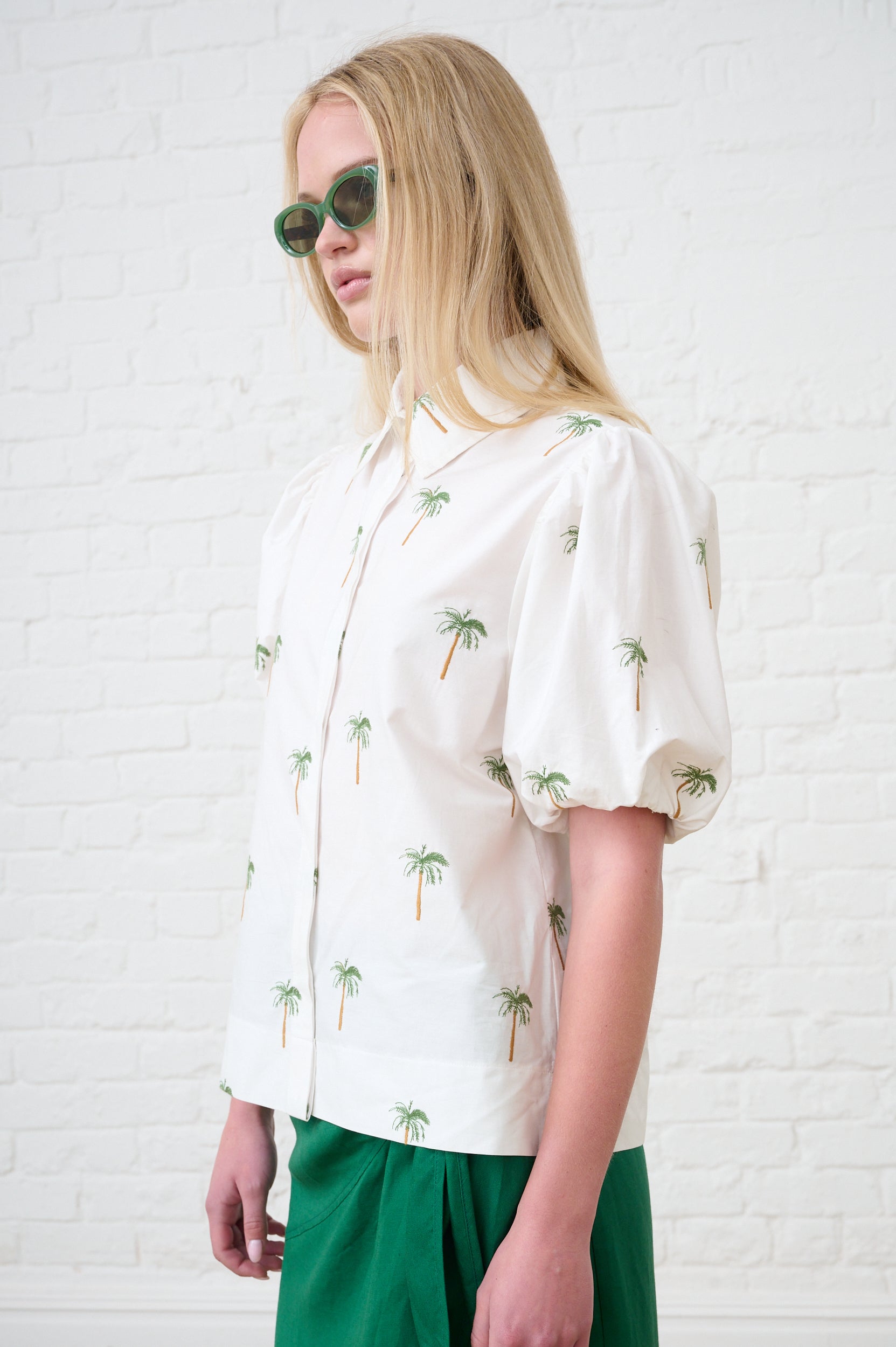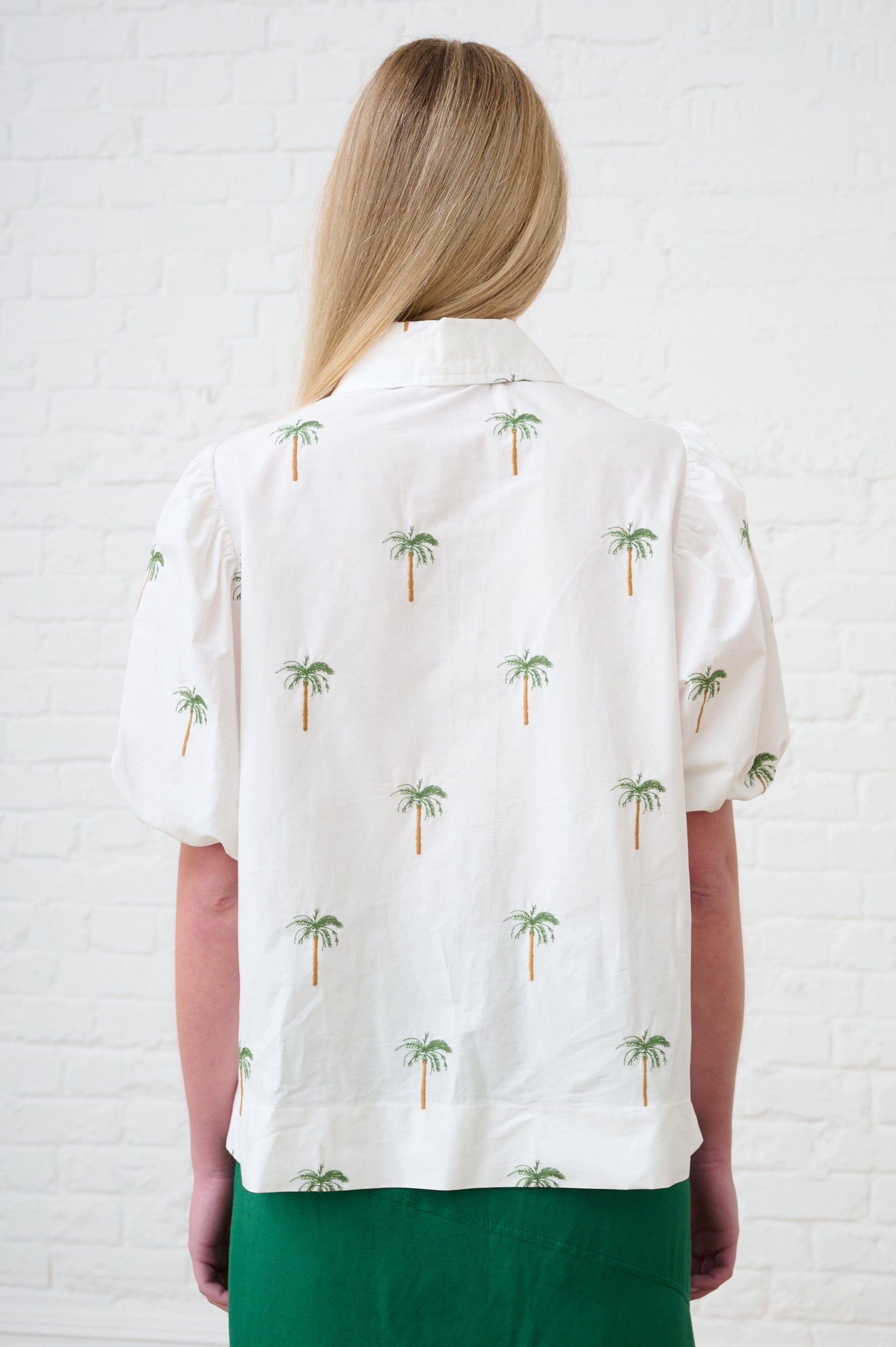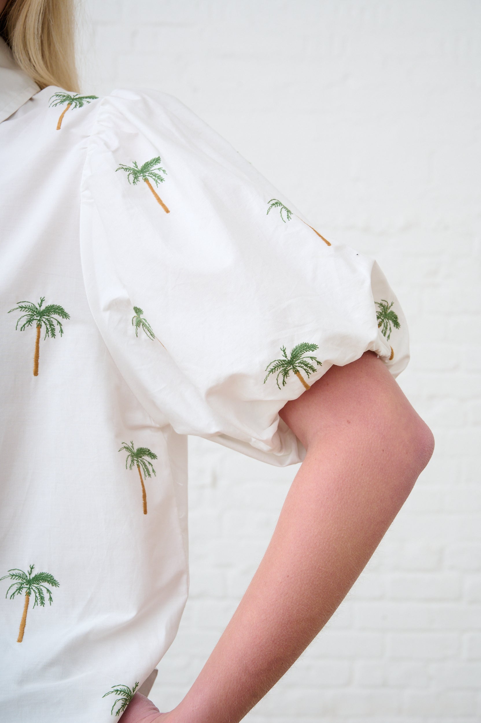 Balloon Sleeve Shirt in Embroidered Palm Tree